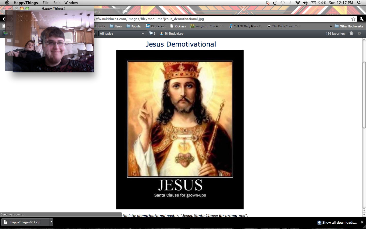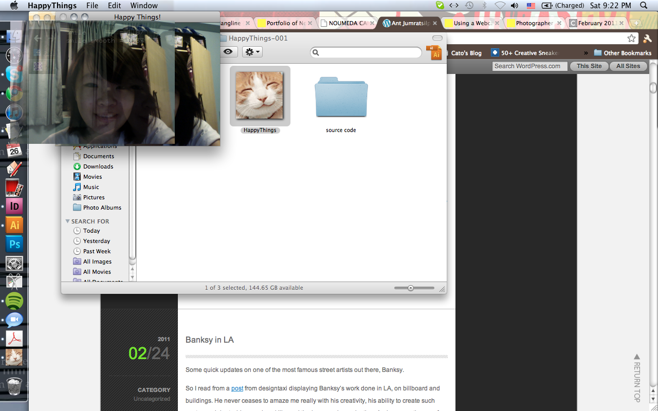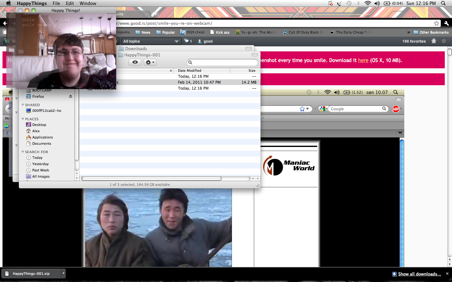 Happy Things is a one hour speed project by Theo Watson and Kyle McDonald that automatically posts a screenshot every time you smile. Download it here (OS X, 10 MB).