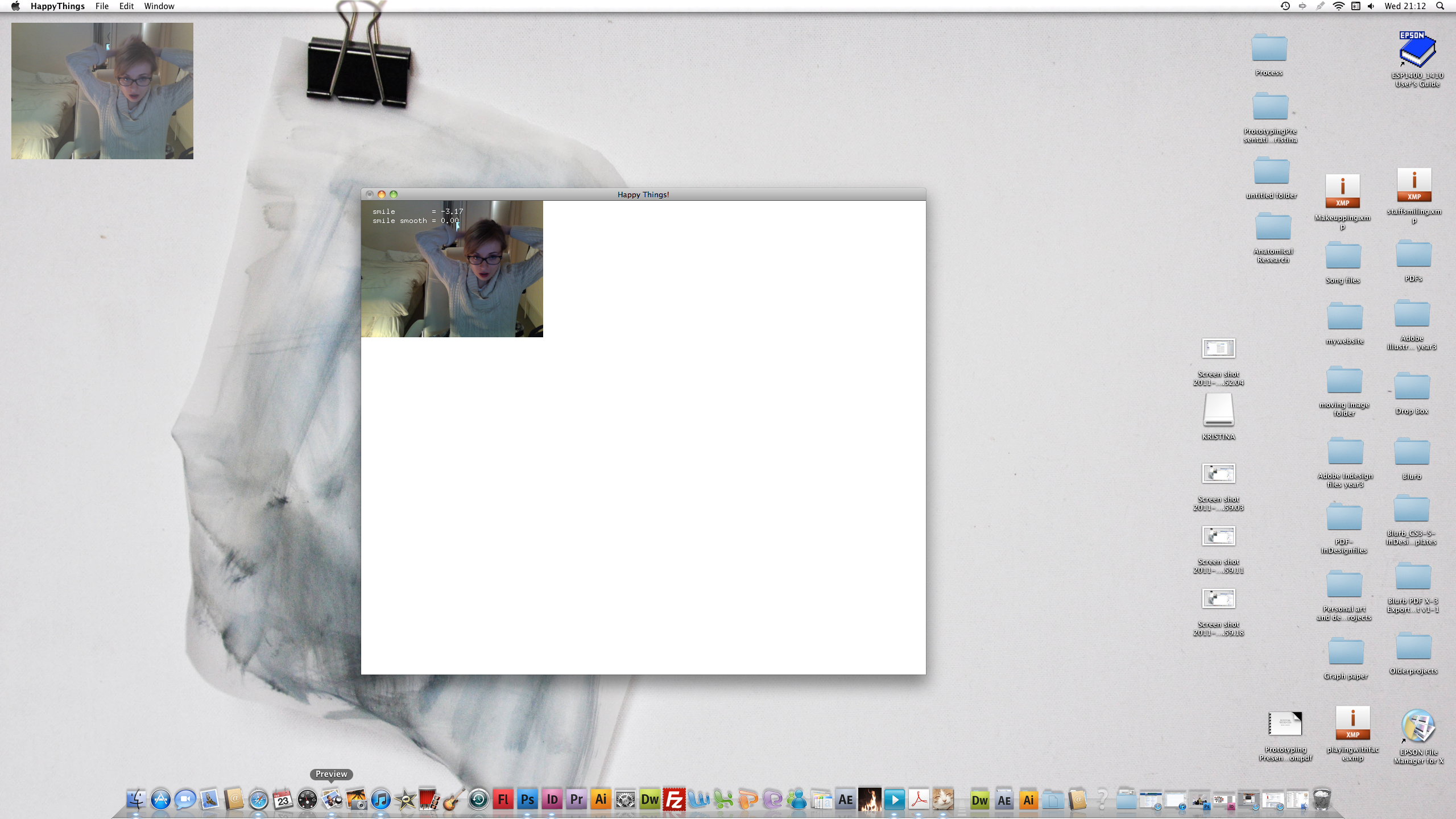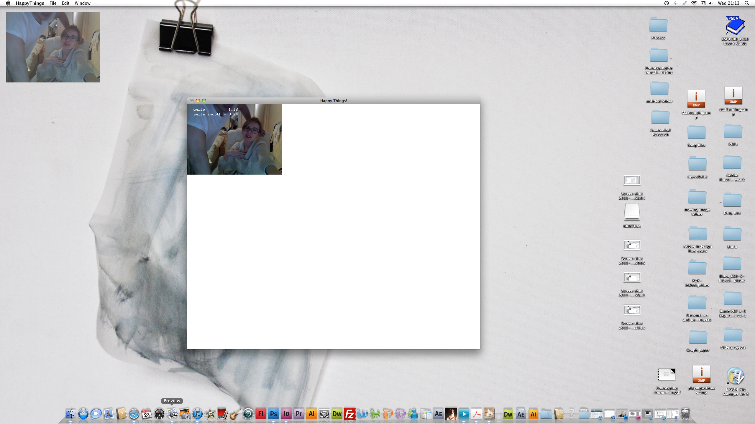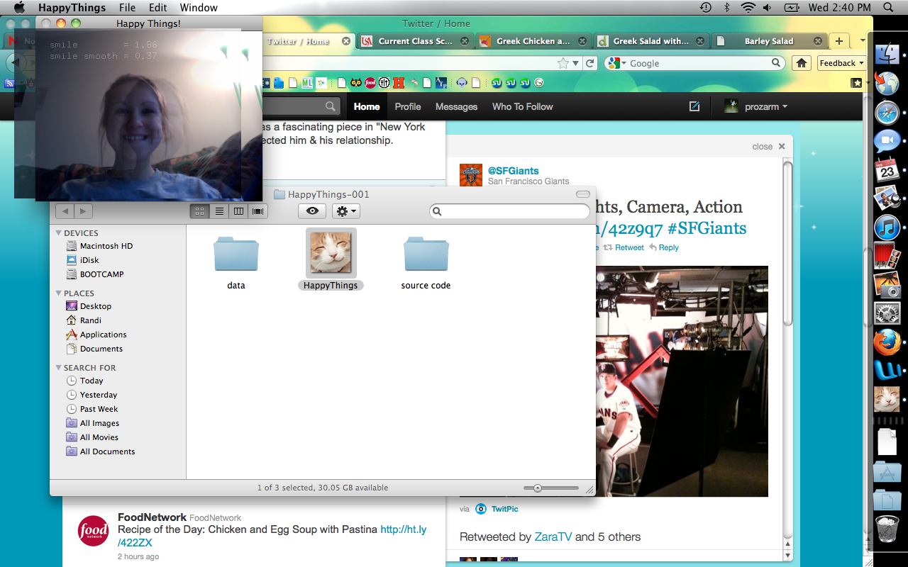 Happy Things is a one hour speed project by Theo Watson and Kyle McDonald that automatically posts a screenshot every time you smile. Download it here (OS X, 10 MB).