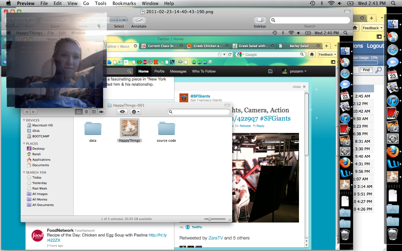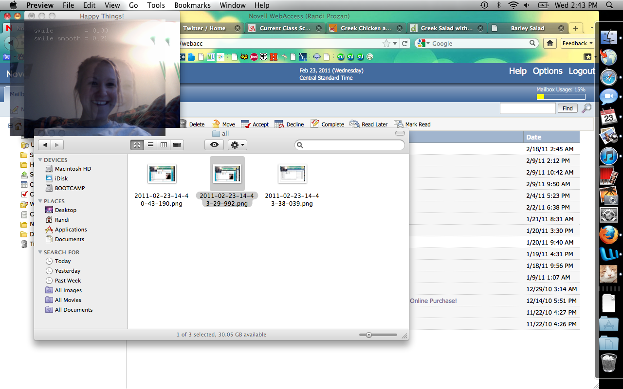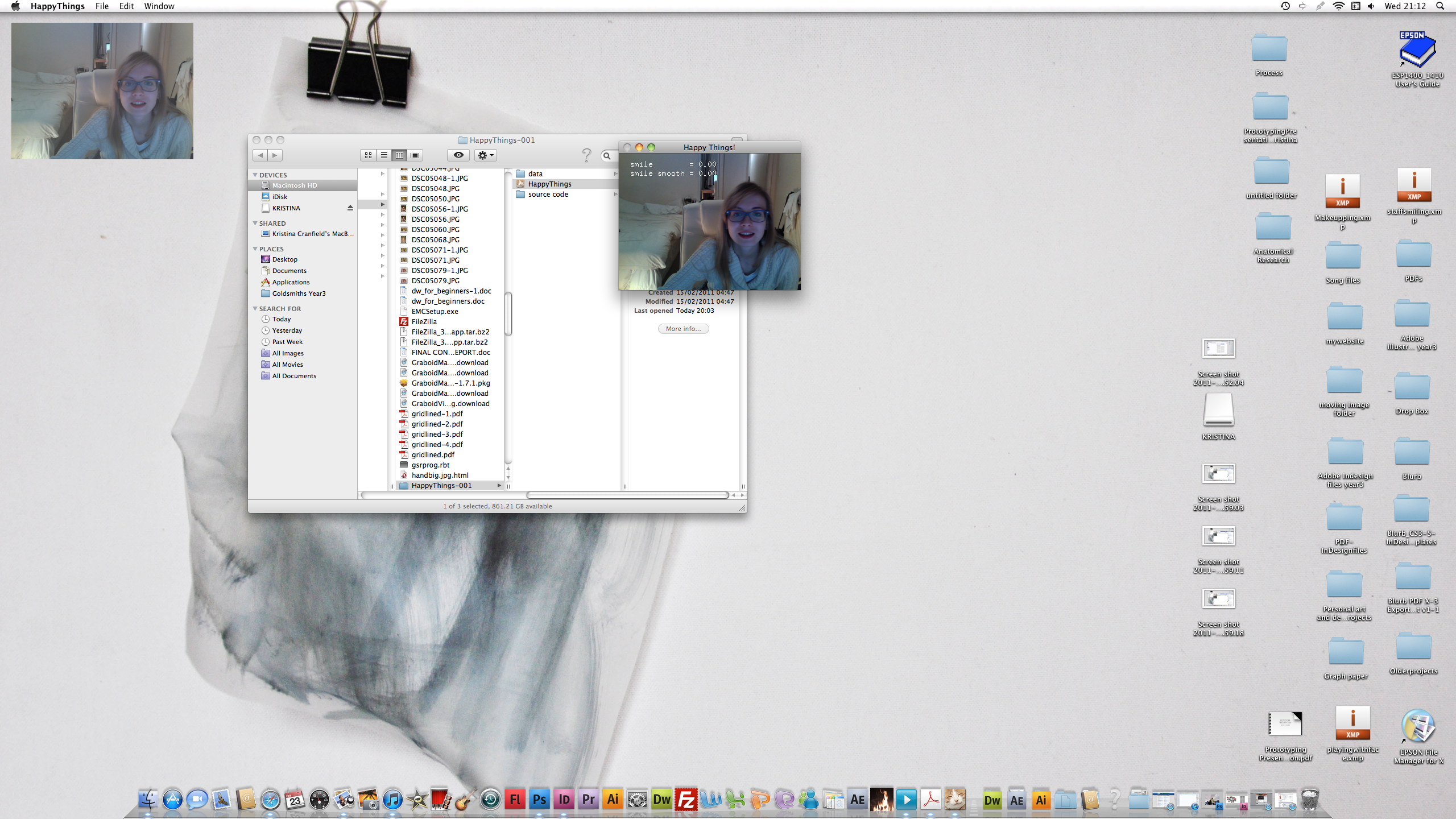 Happy Things is a one hour speed project by Theo Watson and Kyle McDonald that automatically posts a screenshot every time you smile. Download it here (OS X, 10 MB).