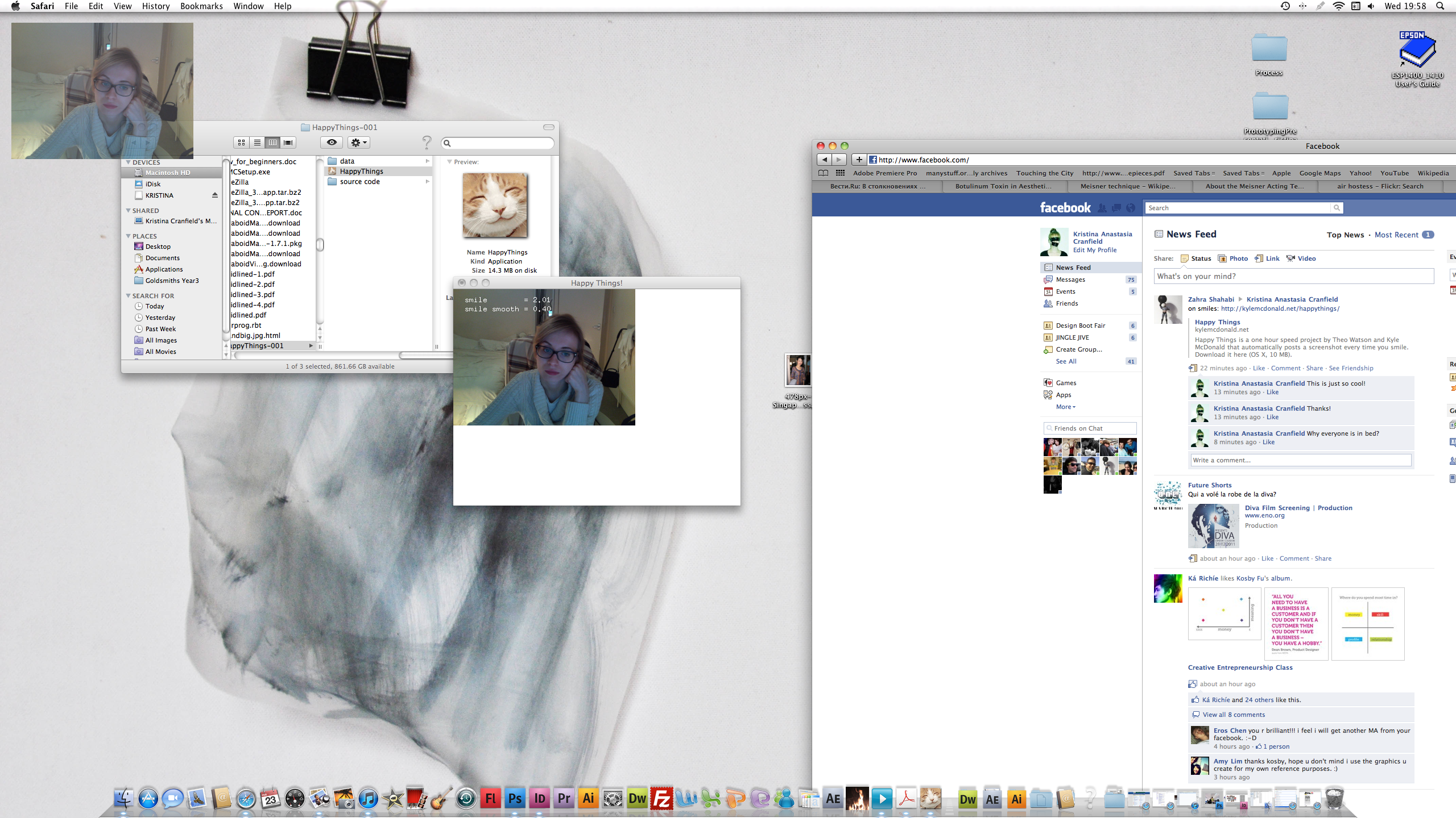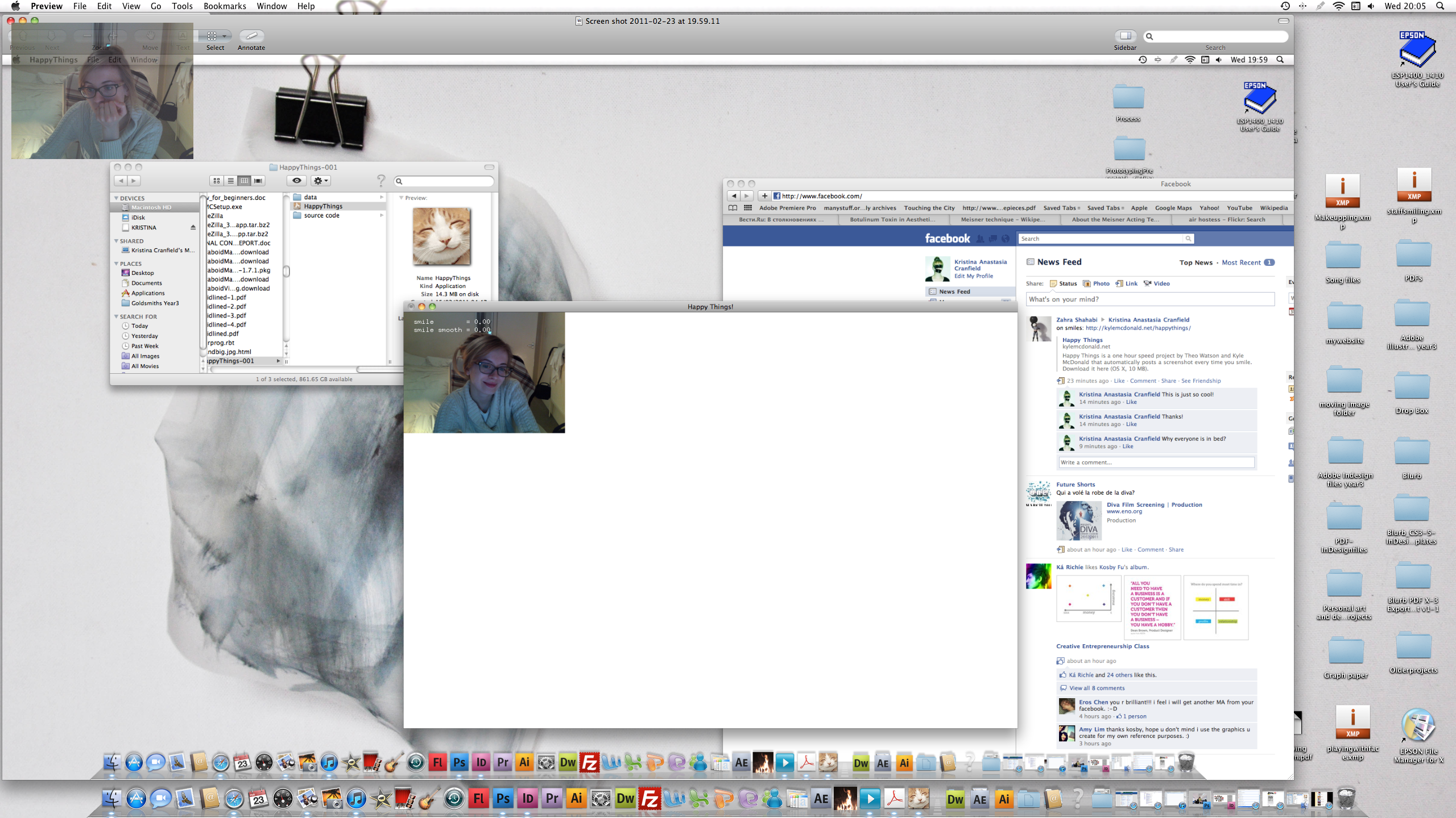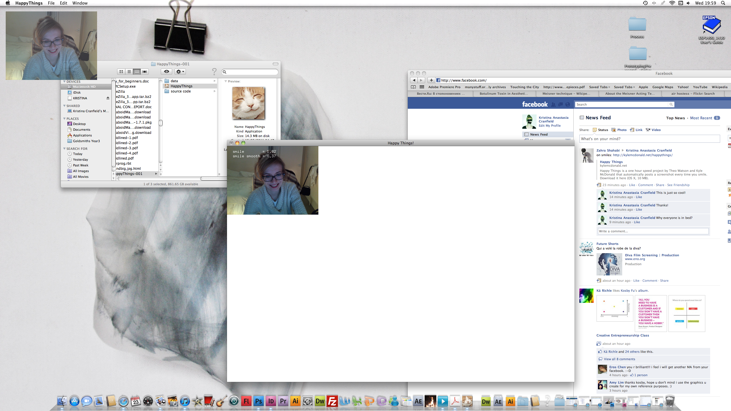 Happy Things is a one hour speed project by Theo Watson and Kyle McDonald that automatically posts a screenshot every time you smile. Download it here (OS X, 10 MB).