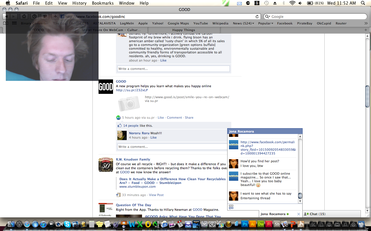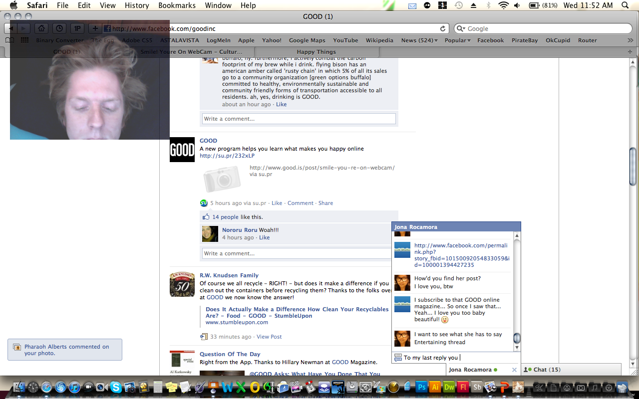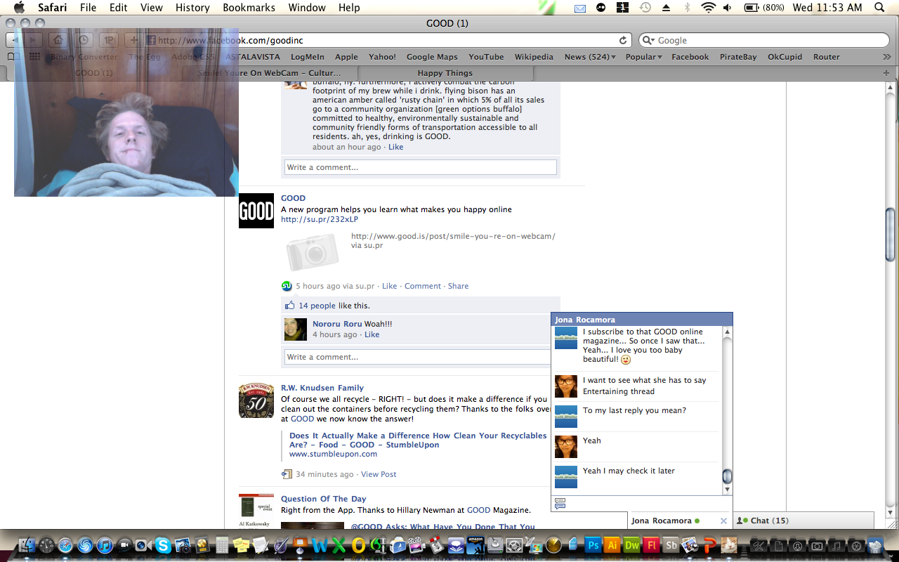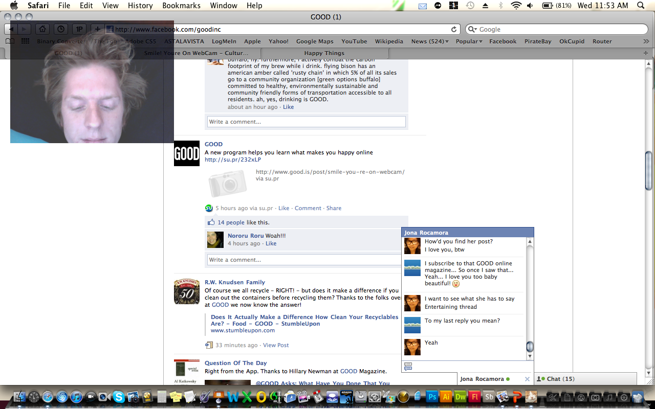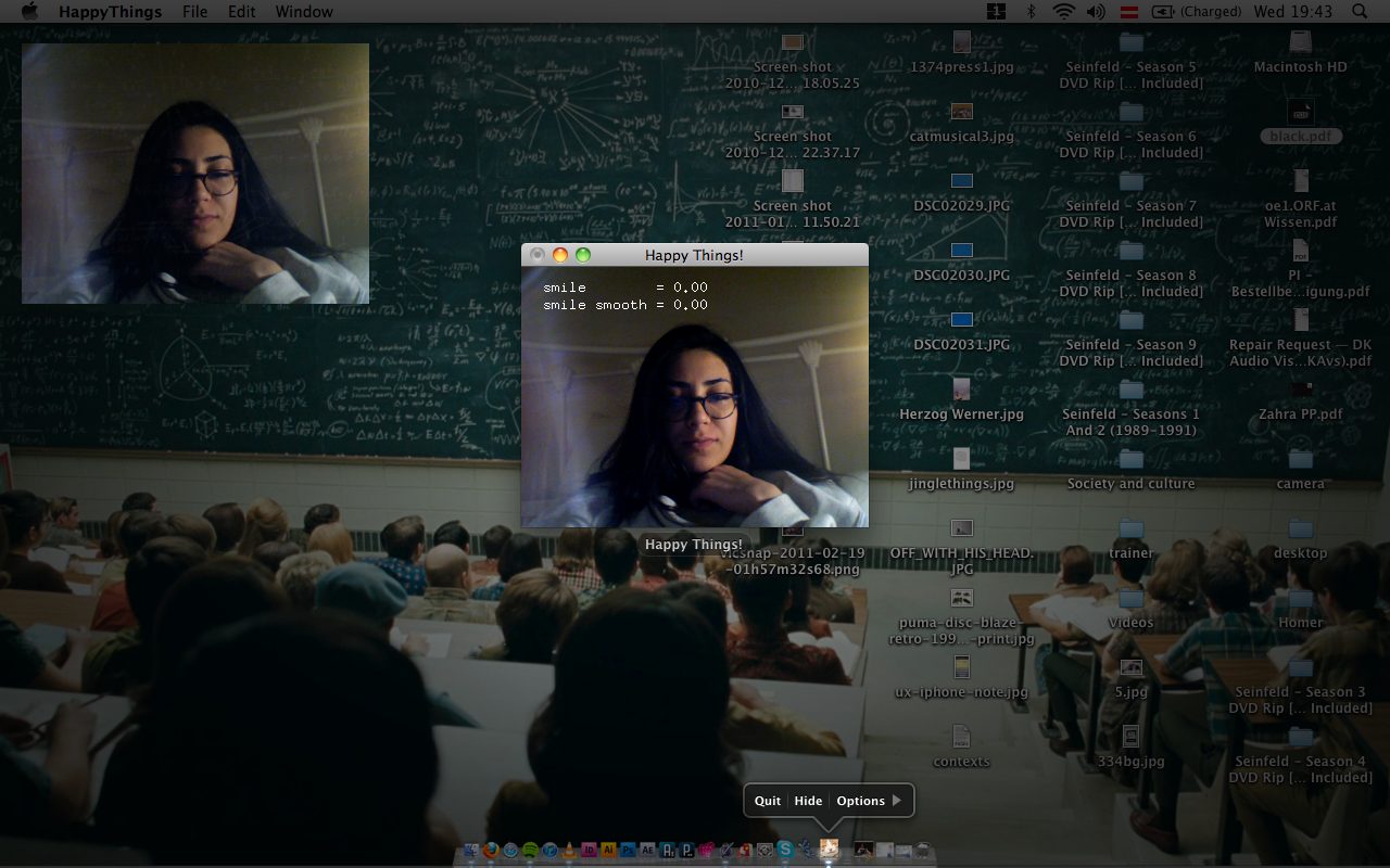 Happy Things is a one hour speed project by Theo Watson and Kyle McDonald that automatically posts a screenshot every time you smile. Download it here (OS X, 10 MB).