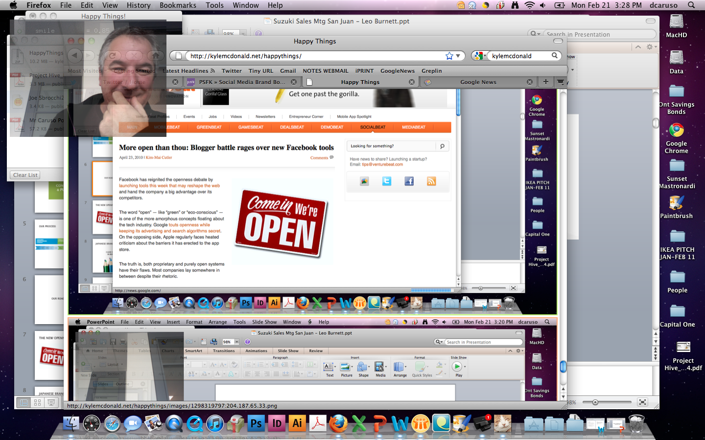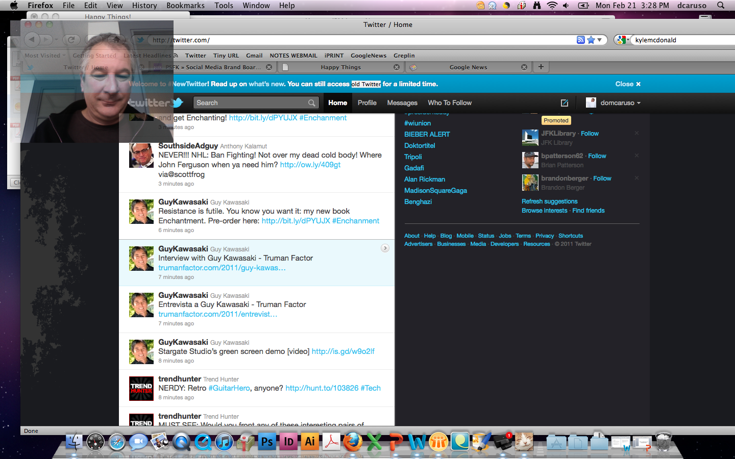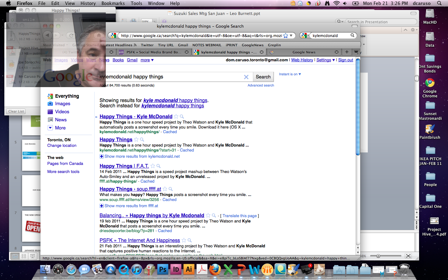 Happy Things is a one hour speed project by Theo Watson and Kyle McDonald that automatically posts a screenshot every time you smile. Download it here (OS X, 10 MB).
