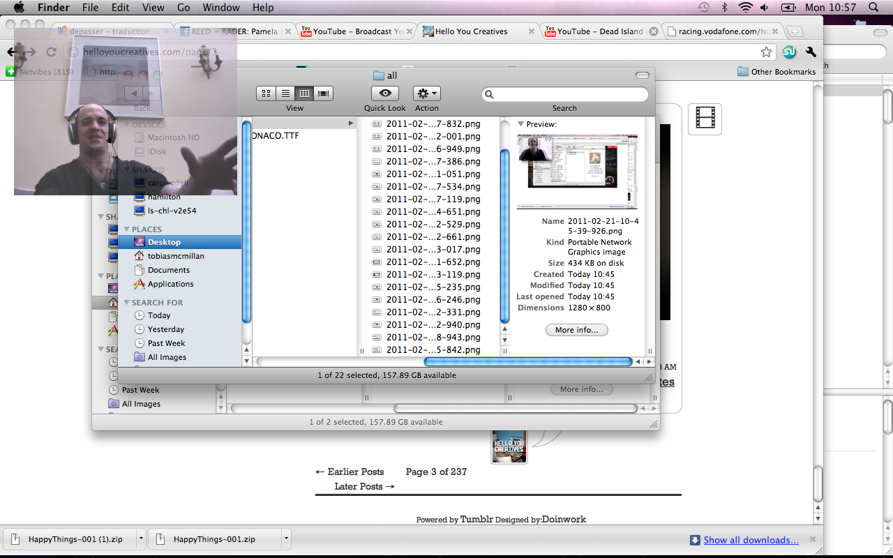 Happy Things is a one hour speed project by Theo Watson and Kyle McDonald that automatically posts a screenshot every time you smile. Download it here (OS X, 10 MB).