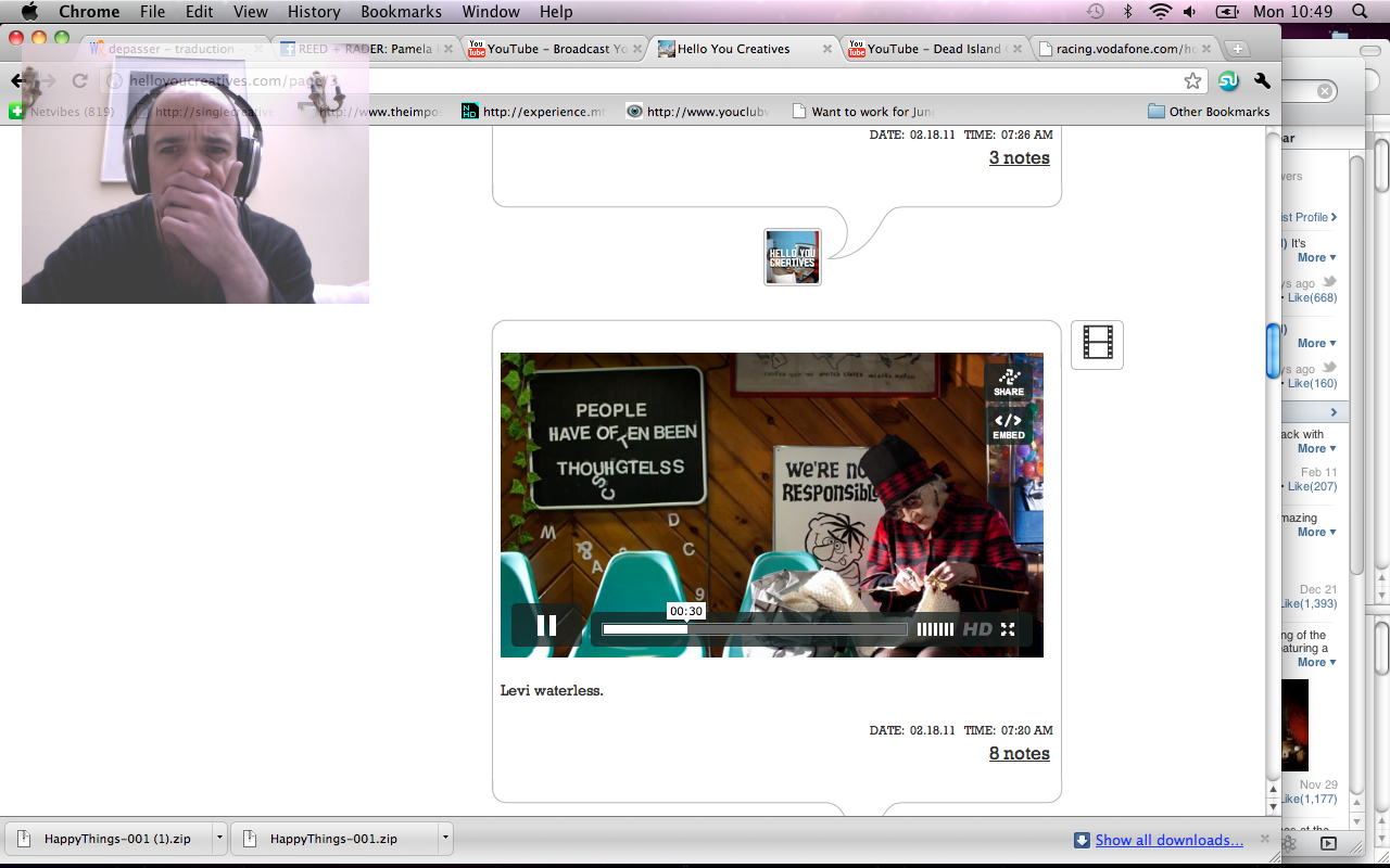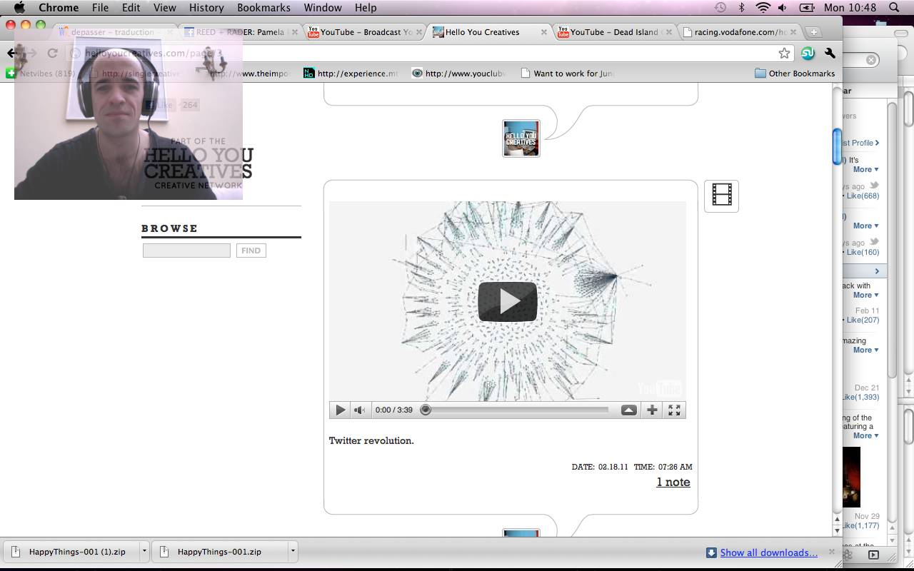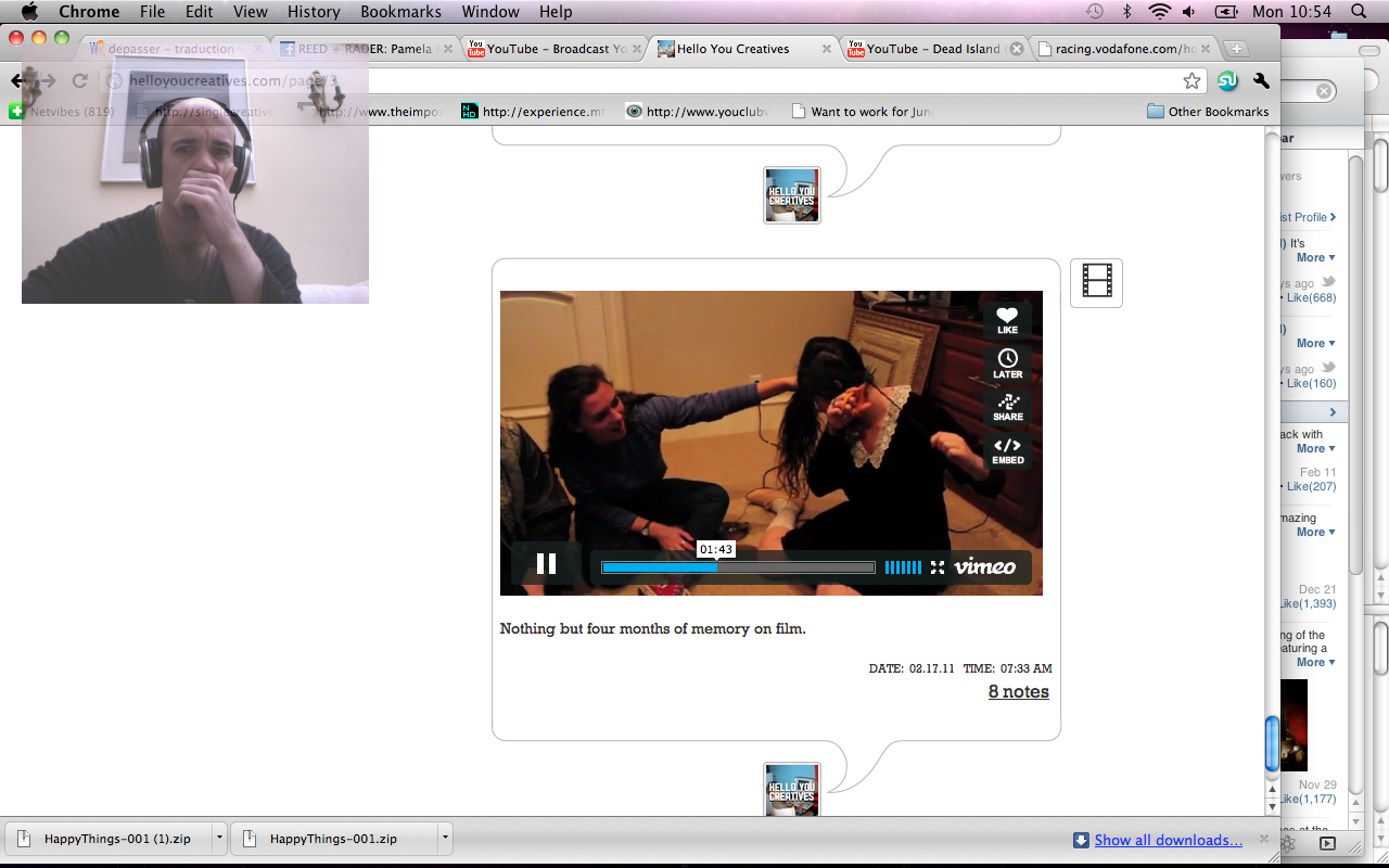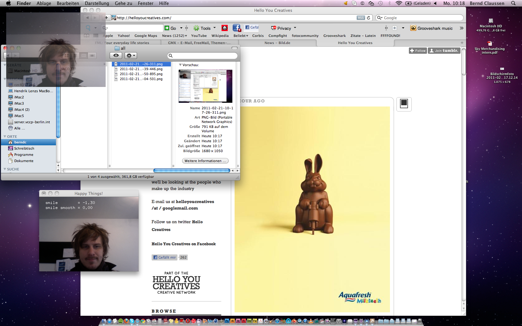 Happy Things is a one hour speed project by Theo Watson and Kyle McDonald that automatically posts a screenshot every time you smile. Download it here (OS X, 10 MB).