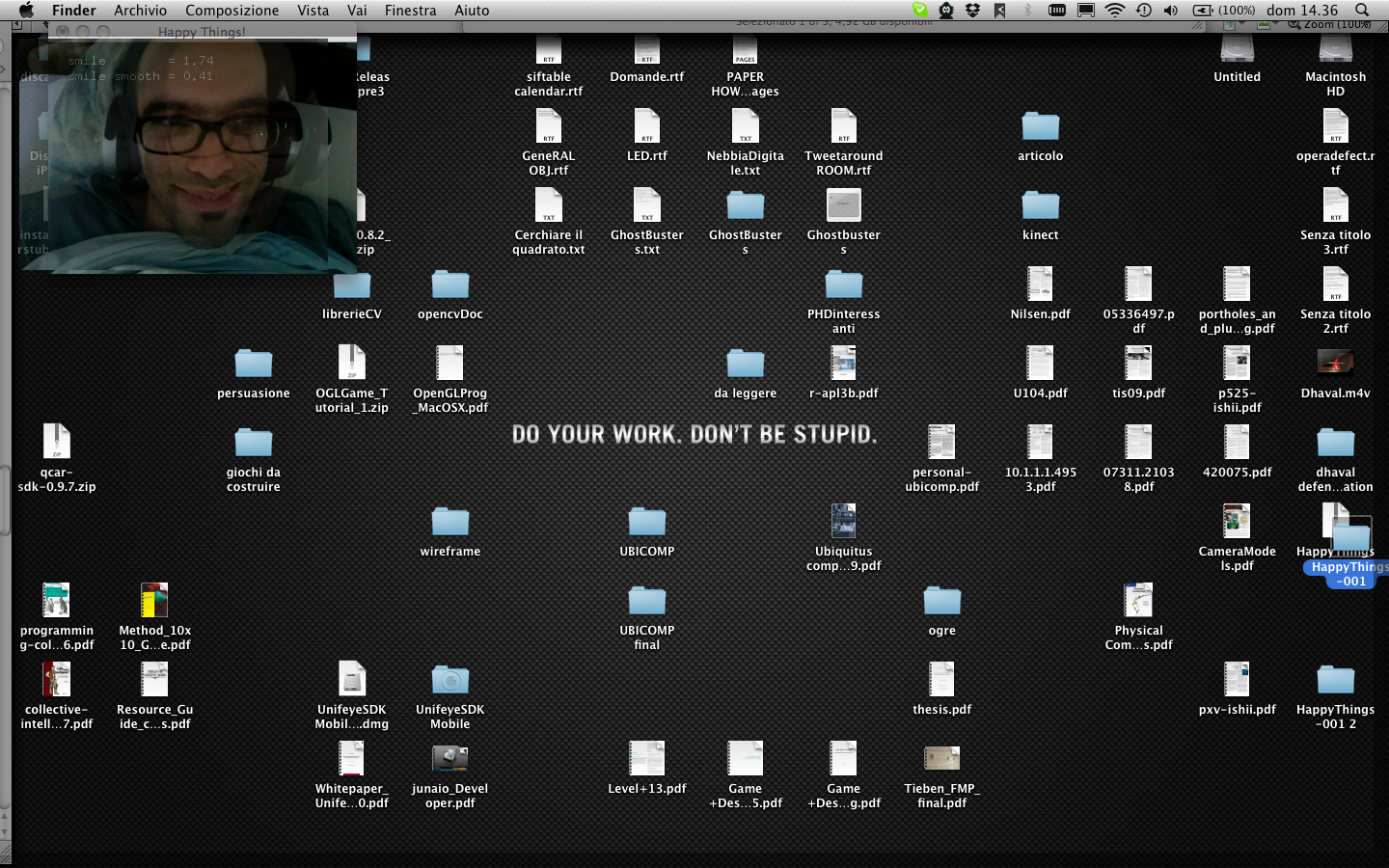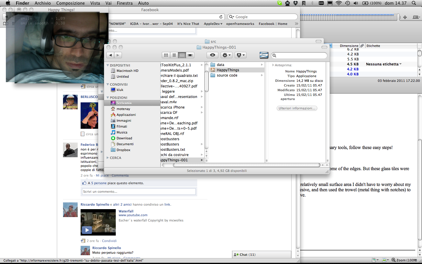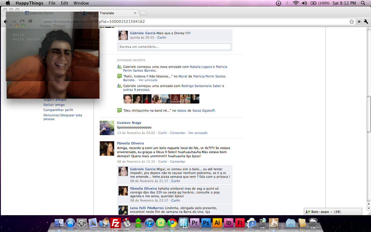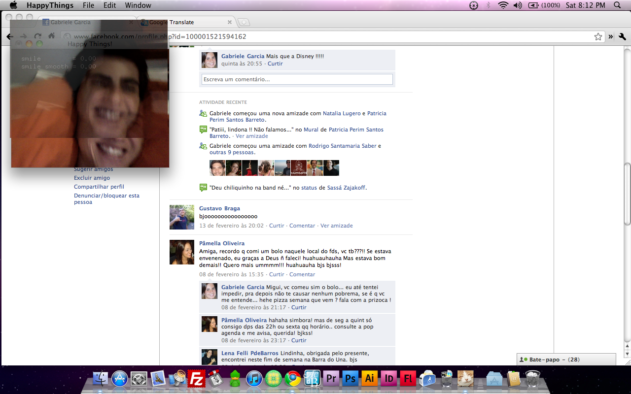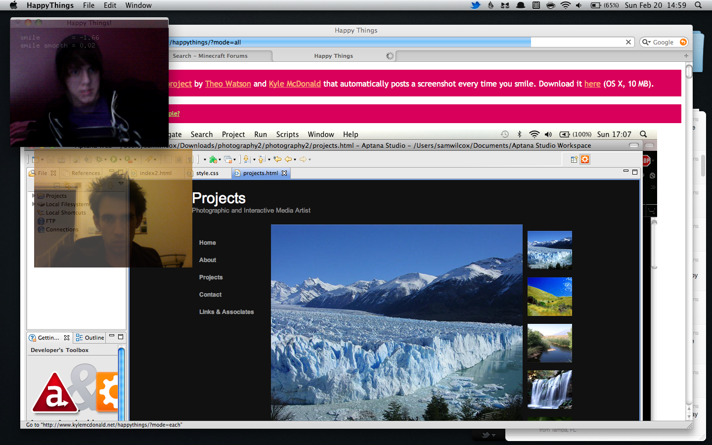 Happy Things is a one hour speed project by Theo Watson and Kyle McDonald that automatically posts a screenshot every time you smile. Download it here (OS X, 10 MB).