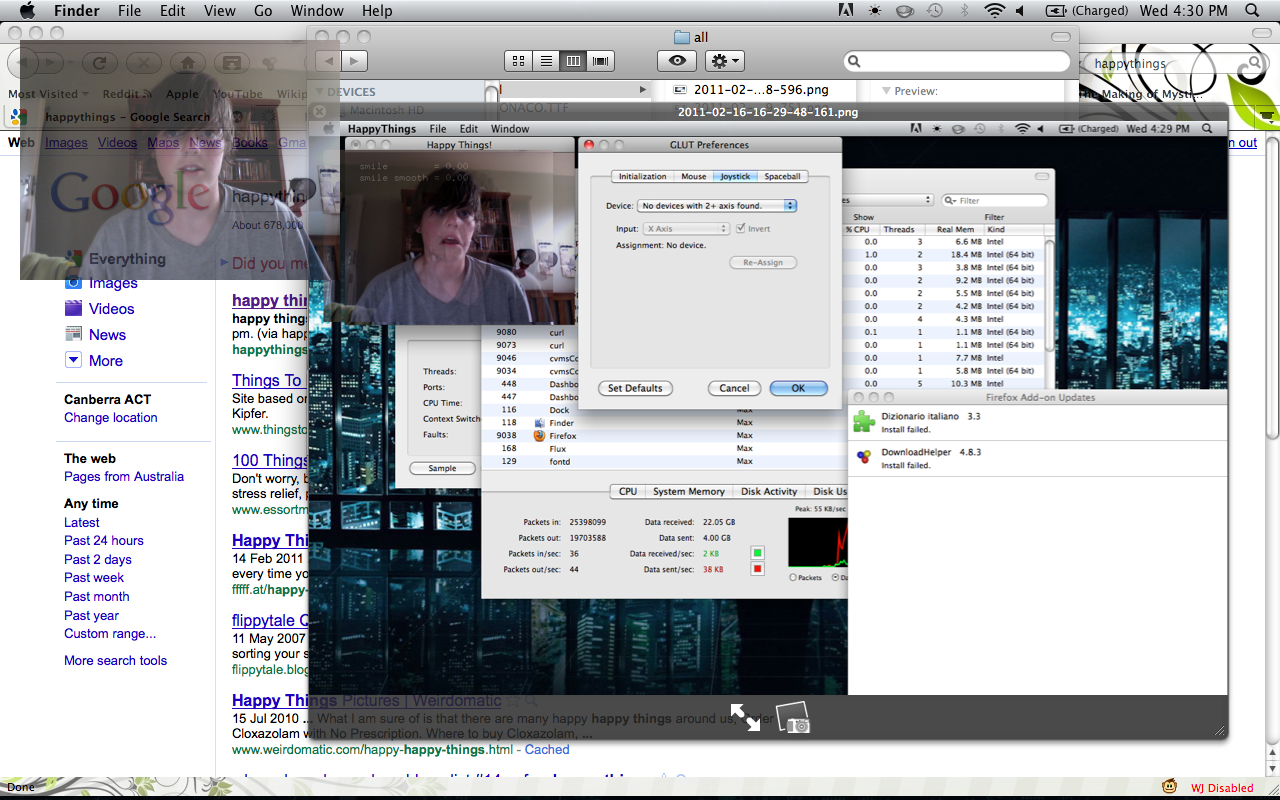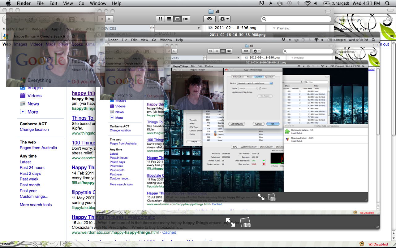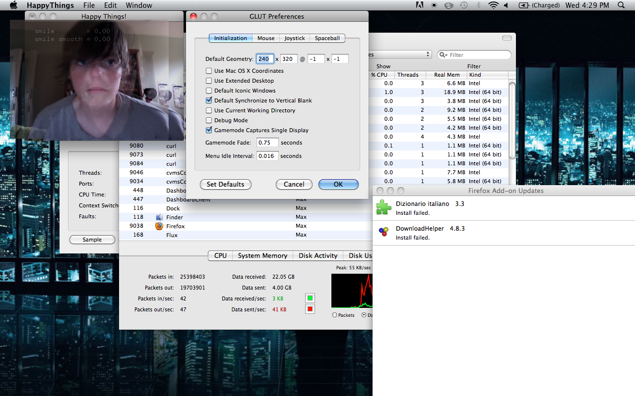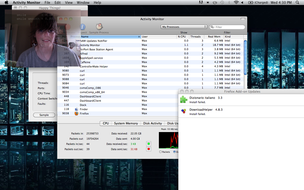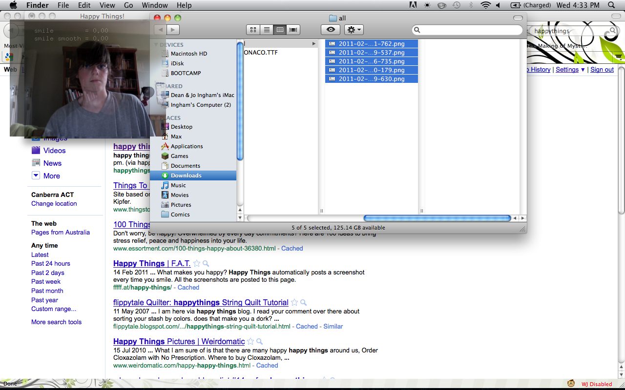 Happy Things is a one hour speed project by Theo Watson and Kyle McDonald that automatically posts a screenshot every time you smile. Download it here (OS X, 10 MB).