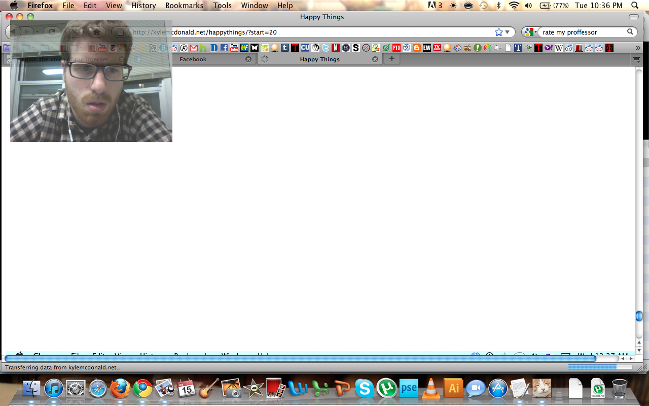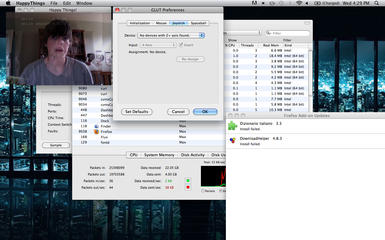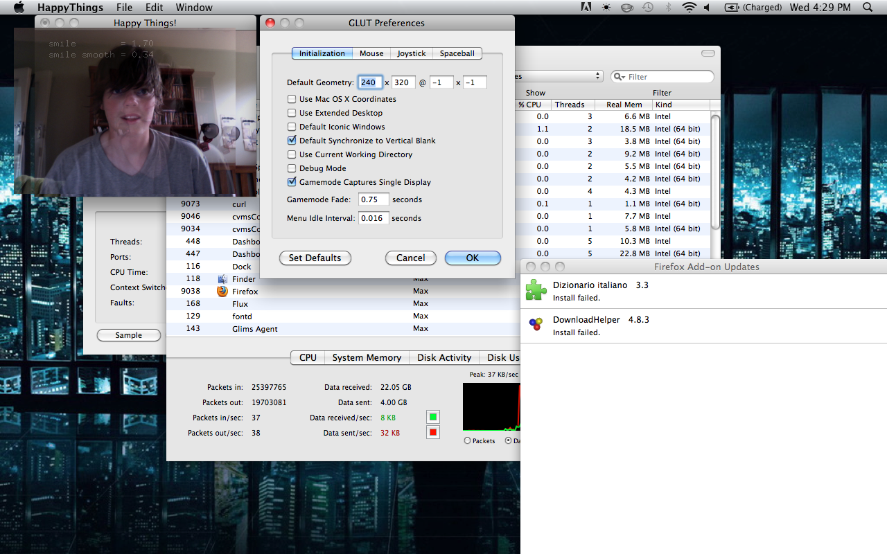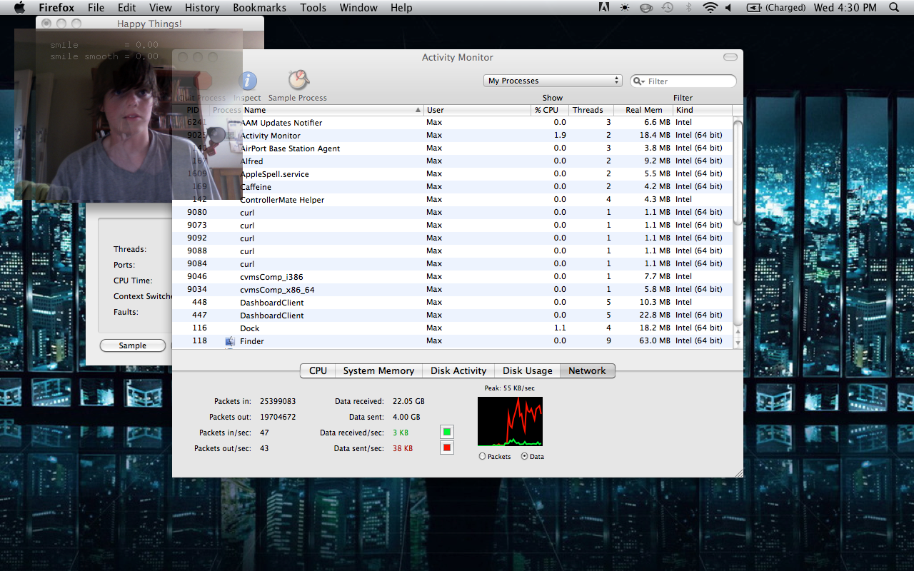 Happy Things is a one hour speed project by Theo Watson and Kyle McDonald that automatically posts a screenshot every time you smile. Download it here (OS X, 10 MB).
