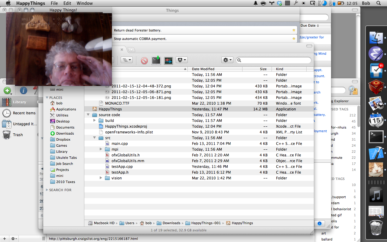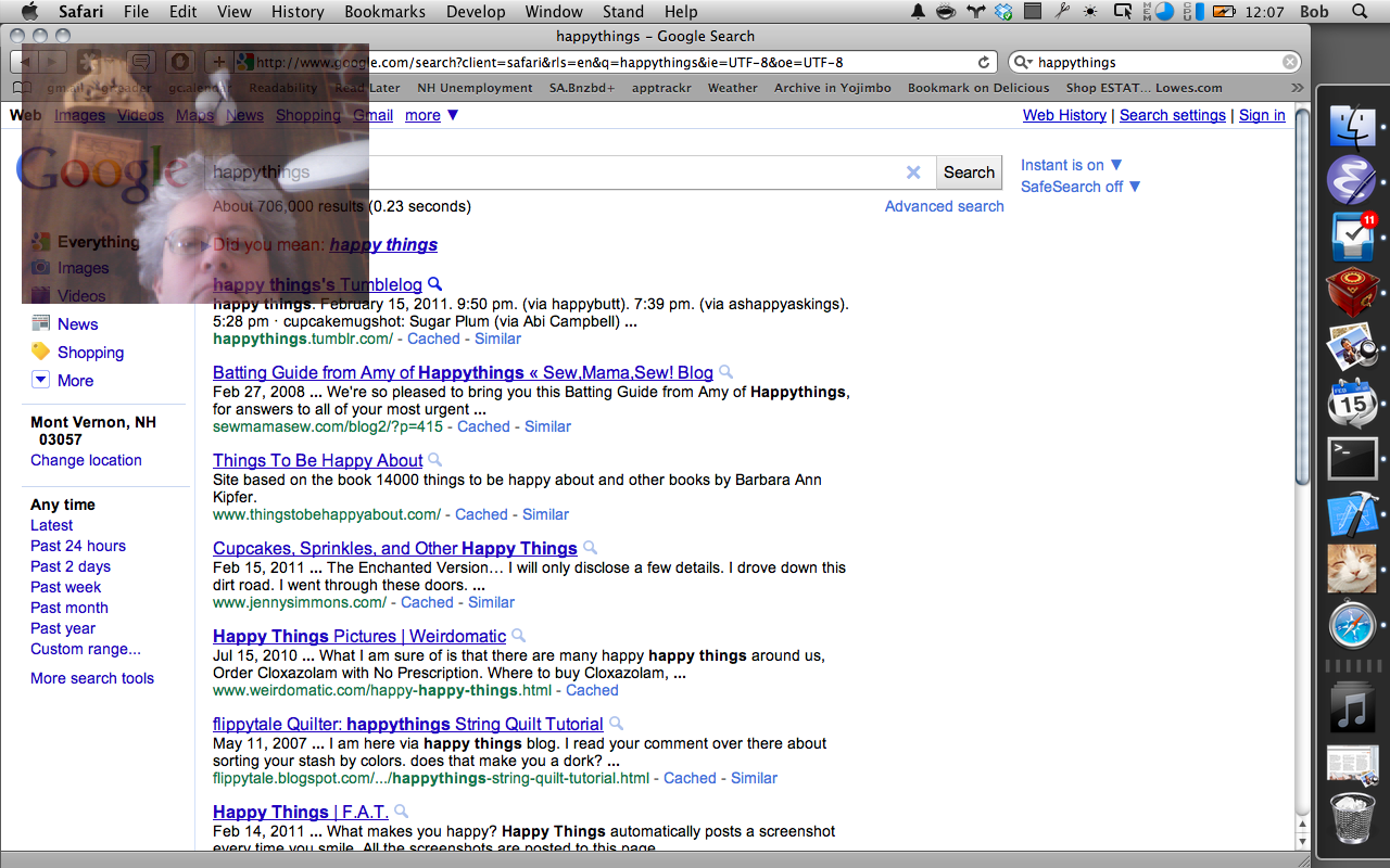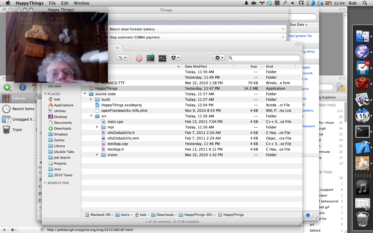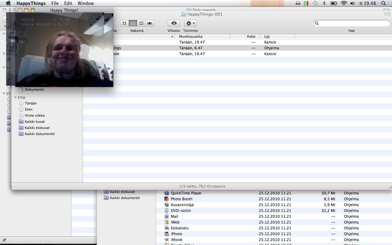 Happy Things is a one hour speed project by Theo Watson and Kyle McDonald that automatically posts a screenshot every time you smile. Download it here (OS X, 10 MB).
