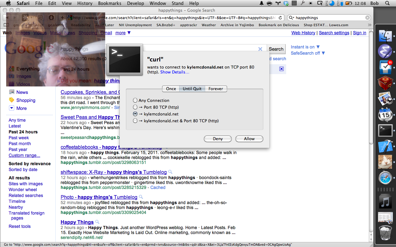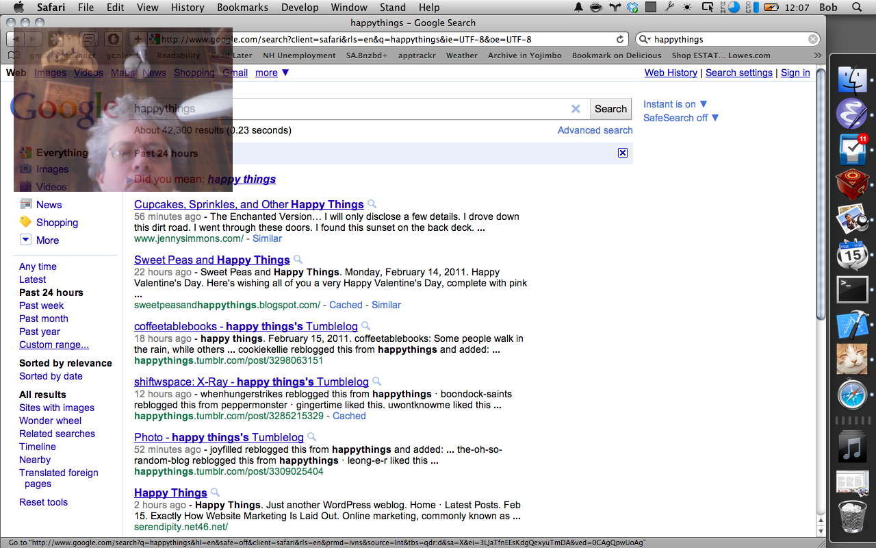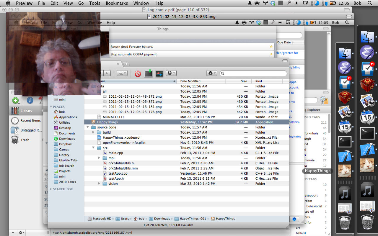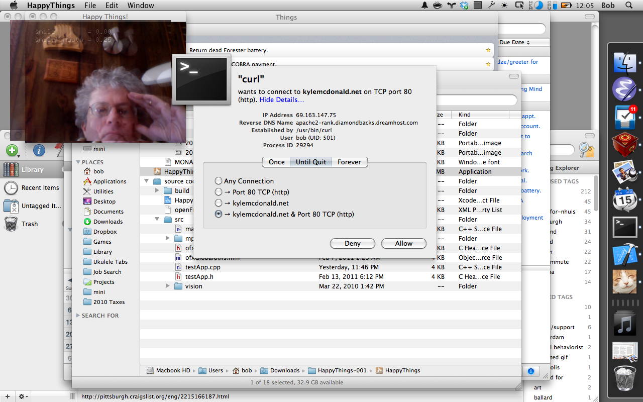 Happy Things is a one hour speed project by Theo Watson and Kyle McDonald that automatically posts a screenshot every time you smile. Download it here (OS X, 10 MB).