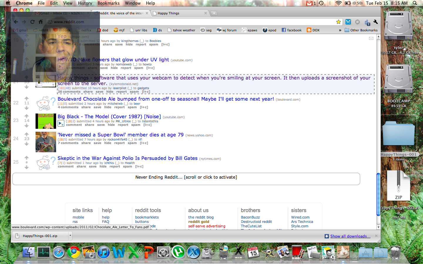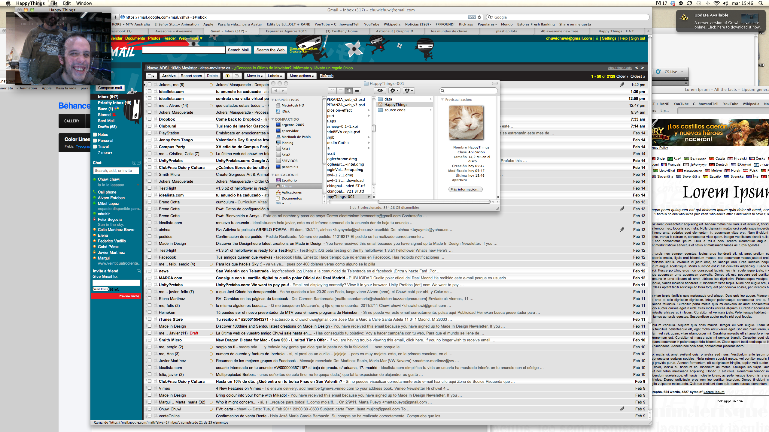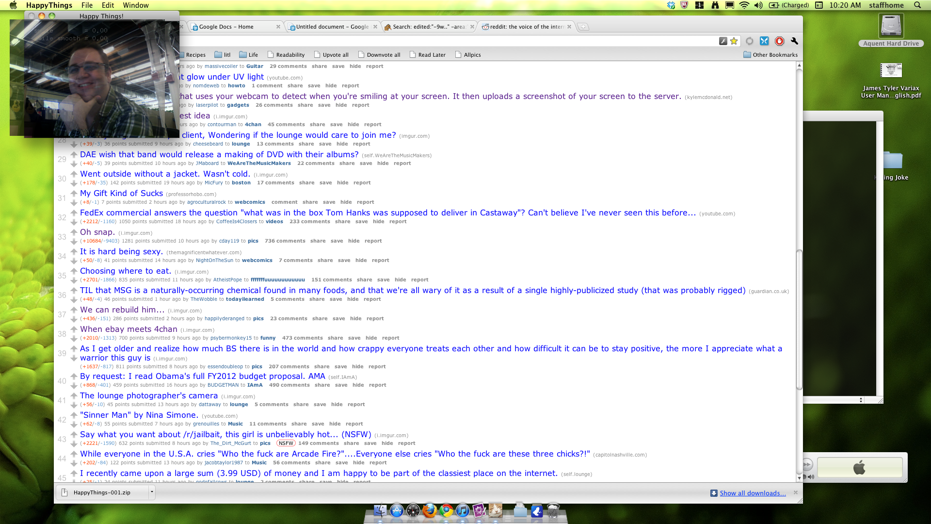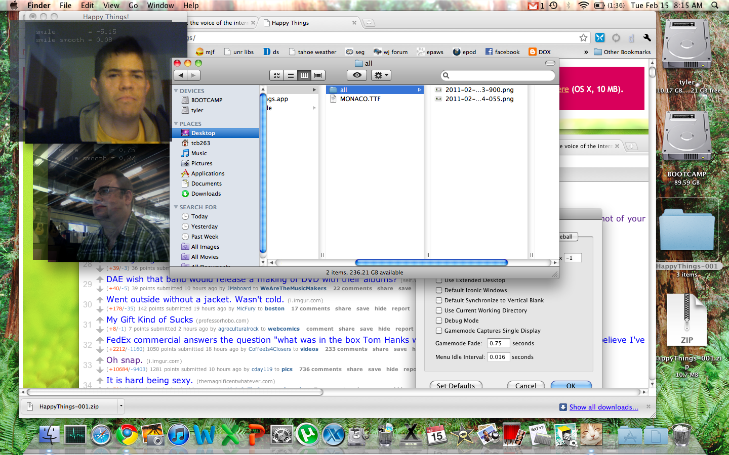 Happy Things is a one hour speed project by Theo Watson and Kyle McDonald that automatically posts a screenshot every time you smile. Download it here (OS X, 10 MB).