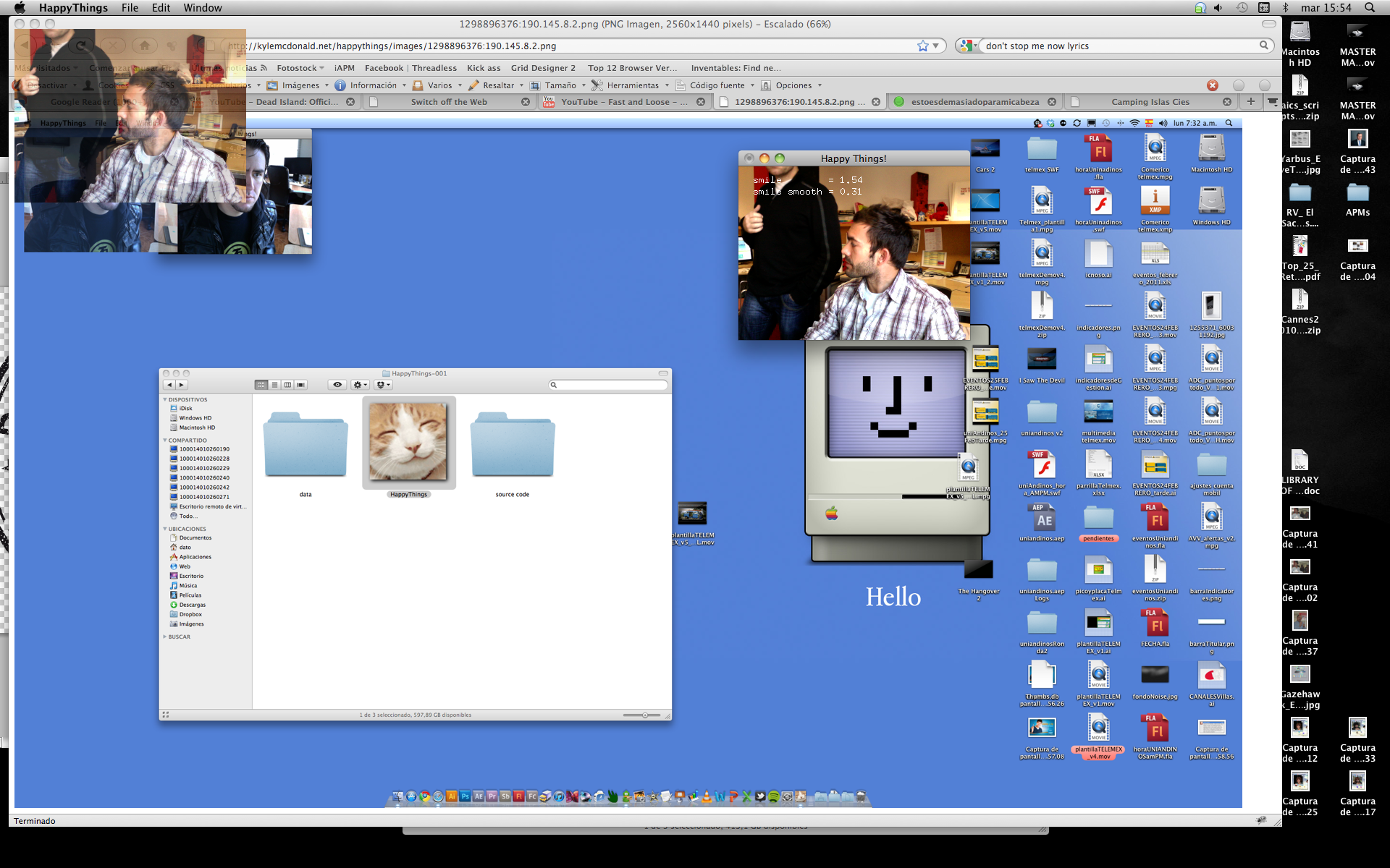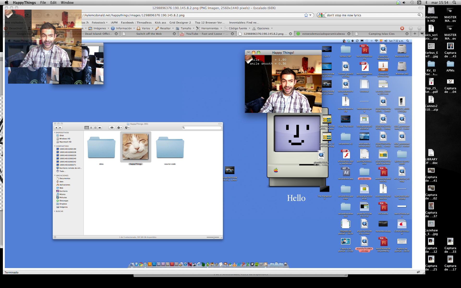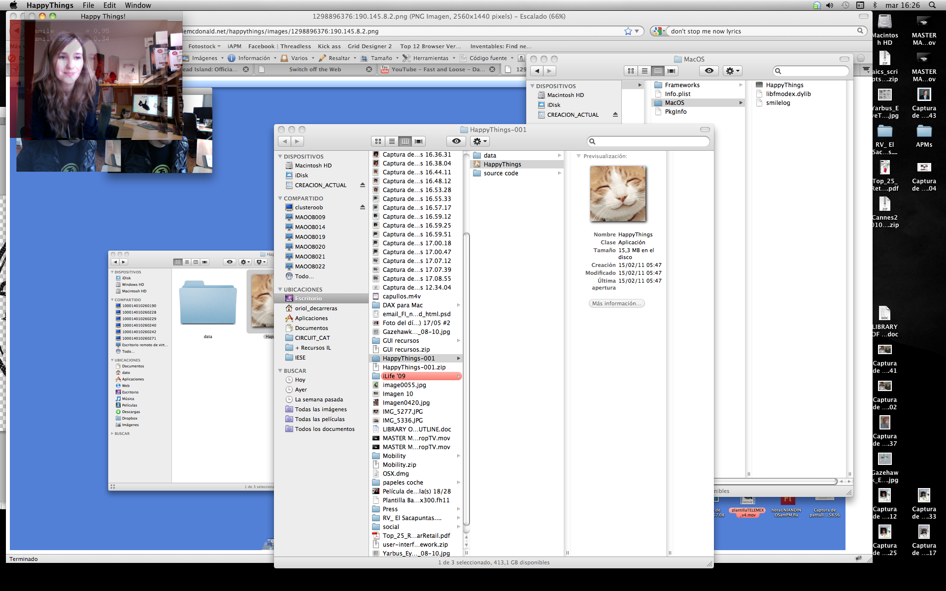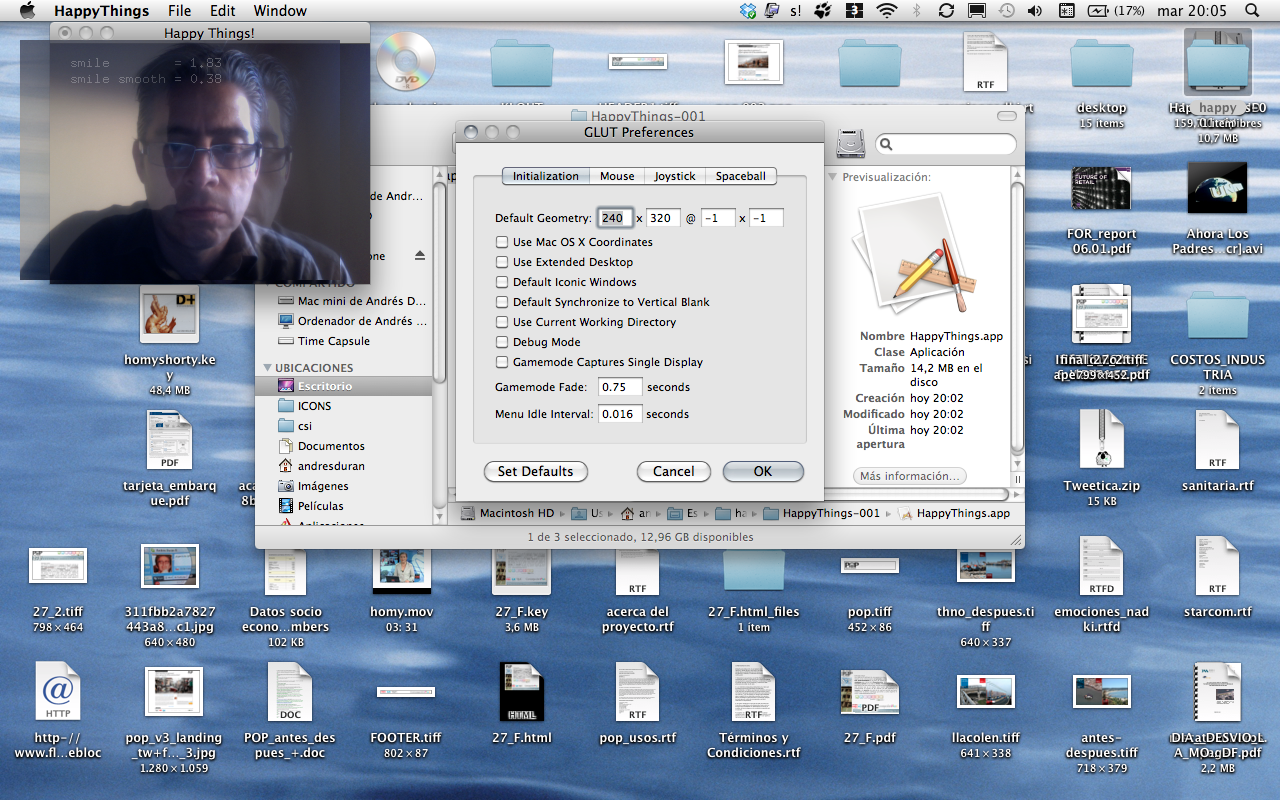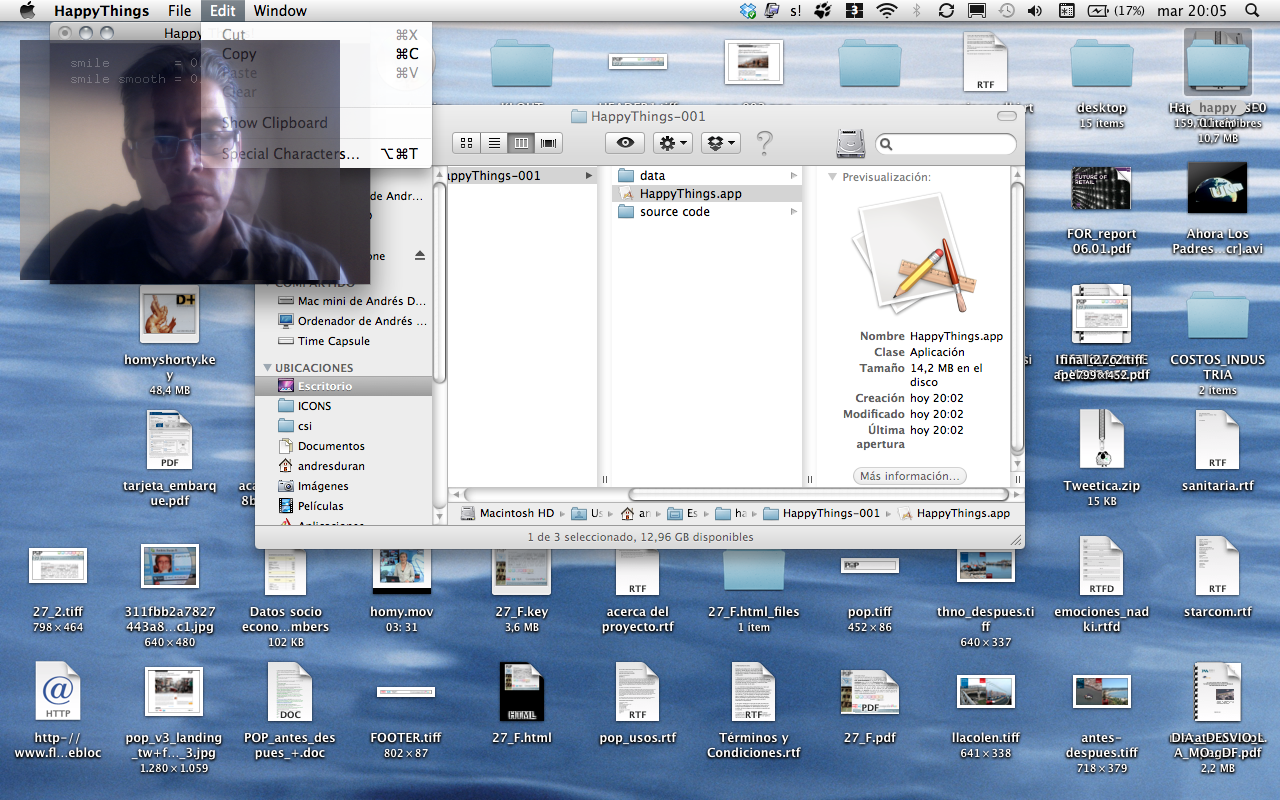 Happy Things is a one hour speed project by Theo Watson and Kyle McDonald that automatically posts a screenshot every time you smile. Download it here (OS X, 10 MB).