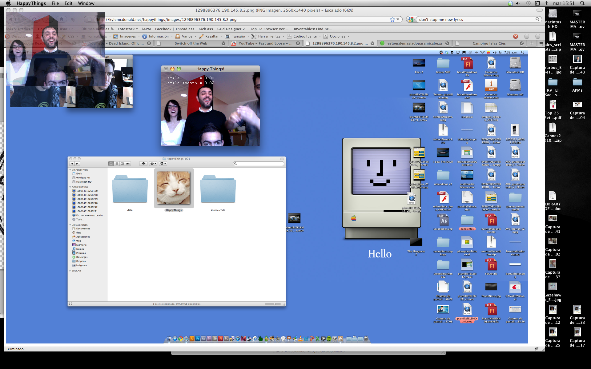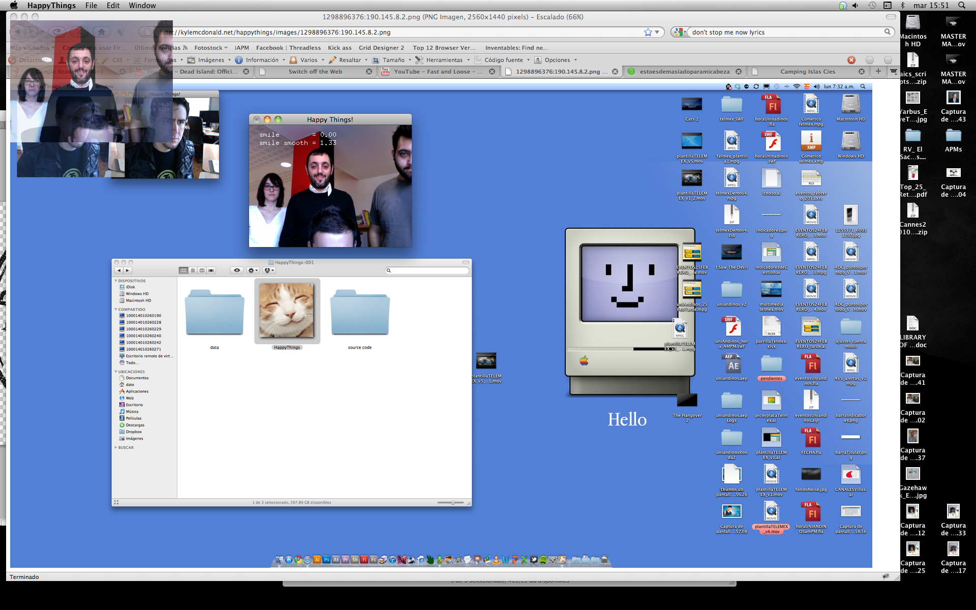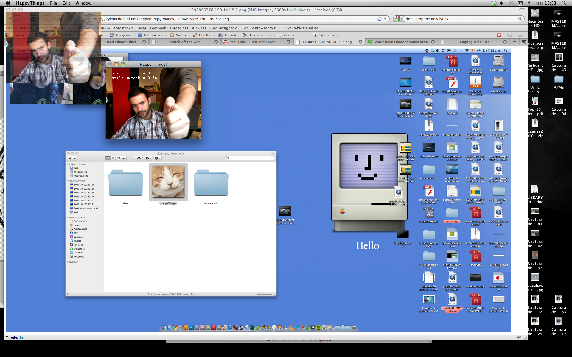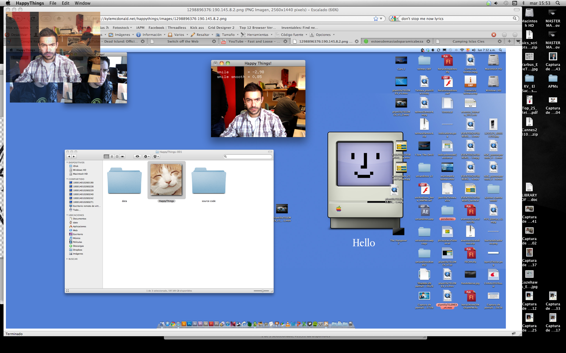 Happy Things is a one hour speed project by Theo Watson and Kyle McDonald that automatically posts a screenshot every time you smile. Download it here (OS X, 10 MB).