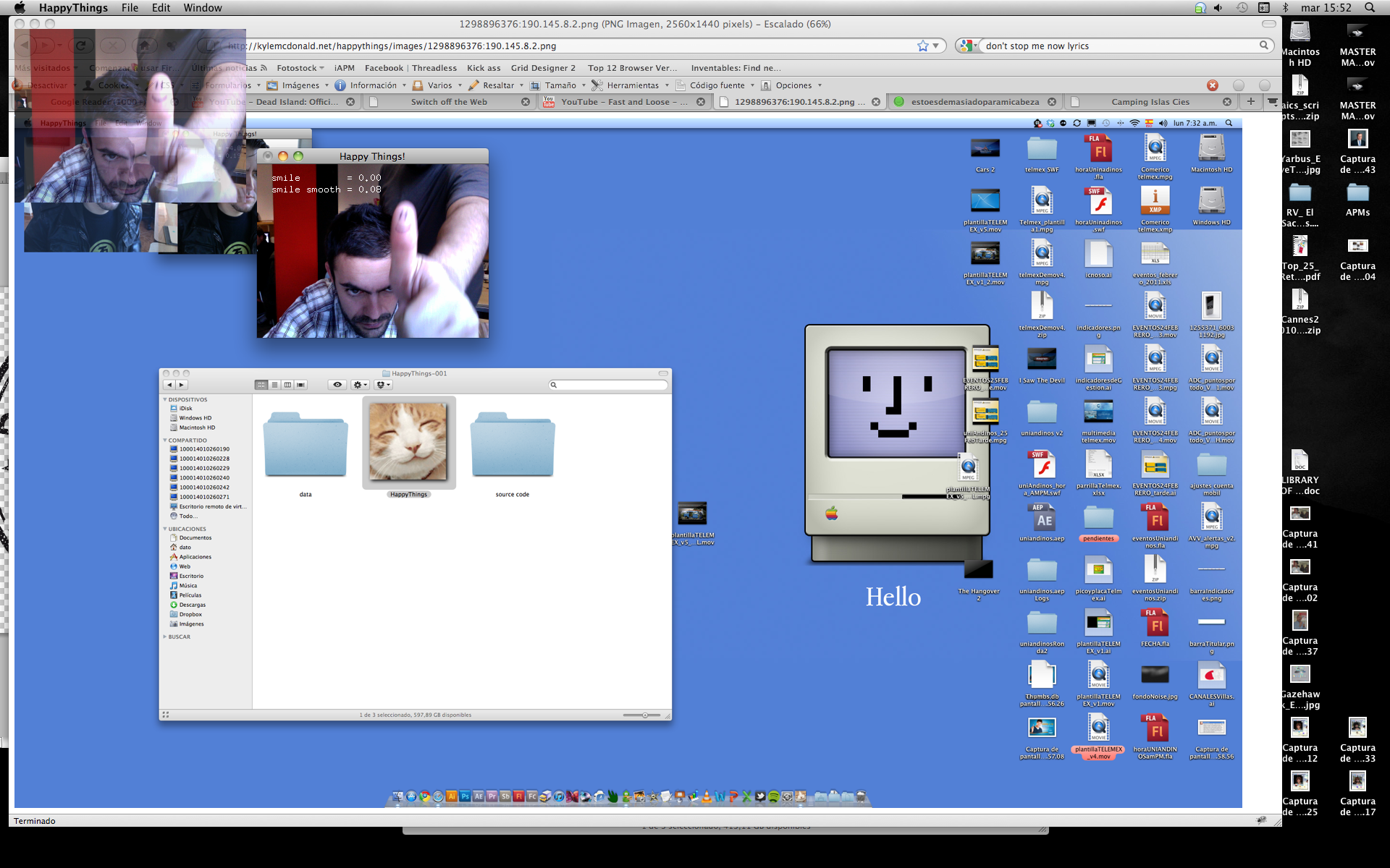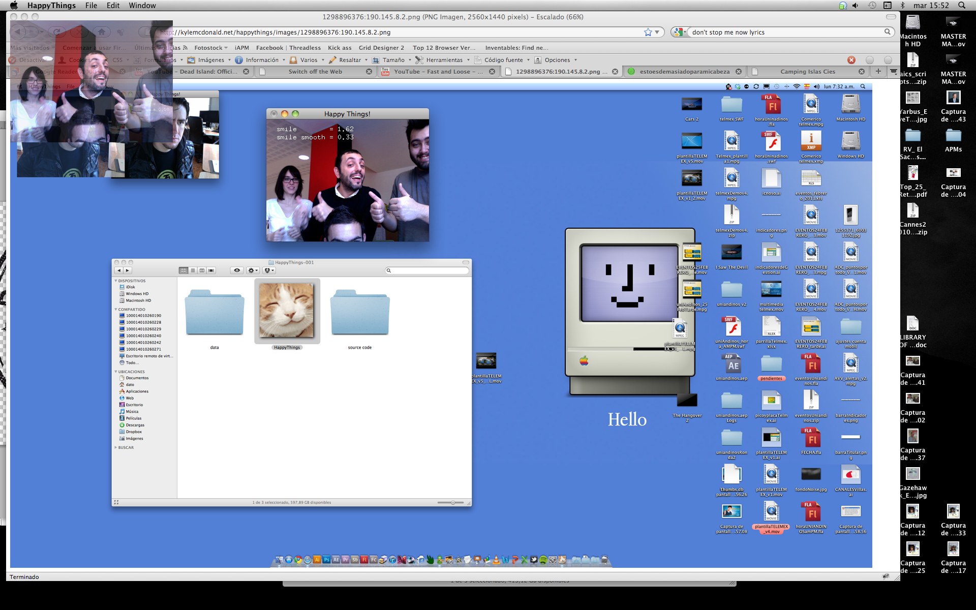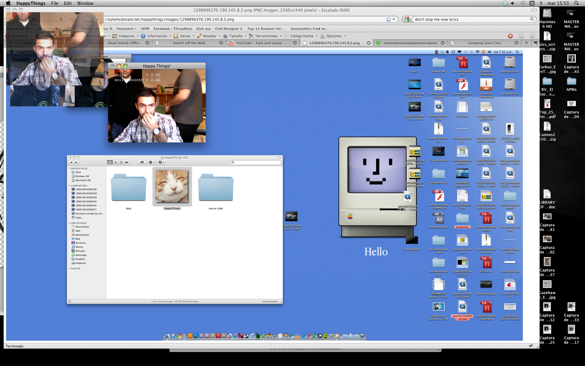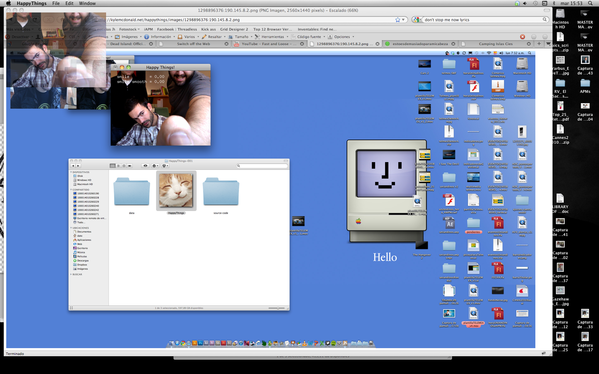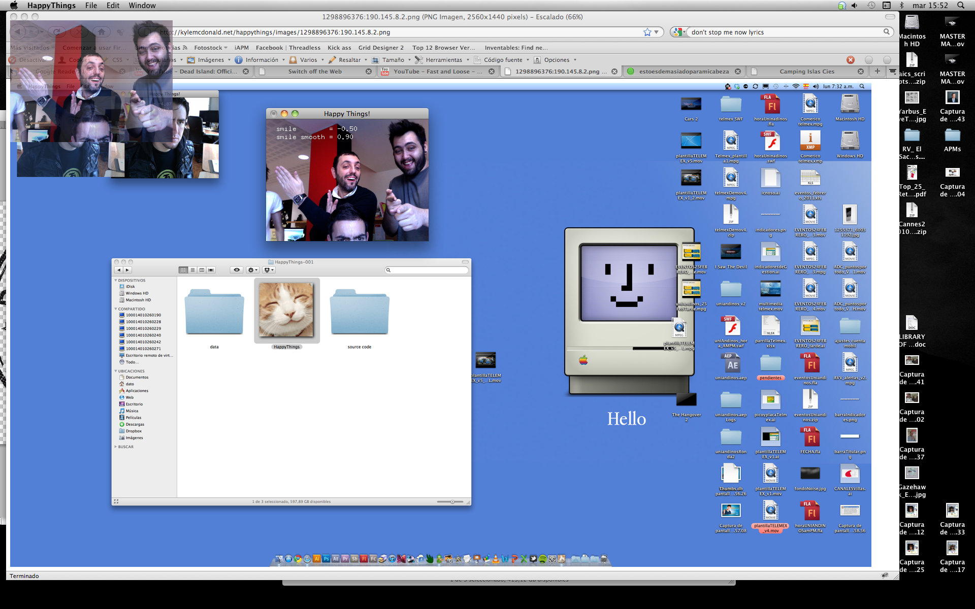 Happy Things is a one hour speed project by Theo Watson and Kyle McDonald that automatically posts a screenshot every time you smile. Download it here (OS X, 10 MB).