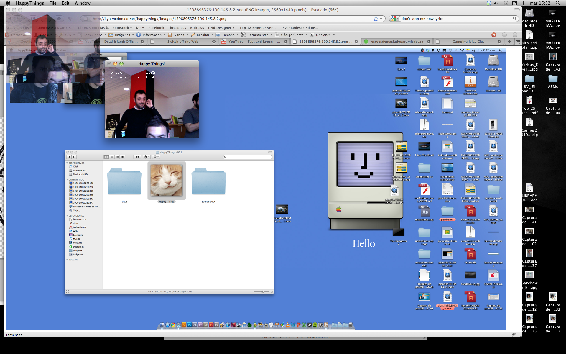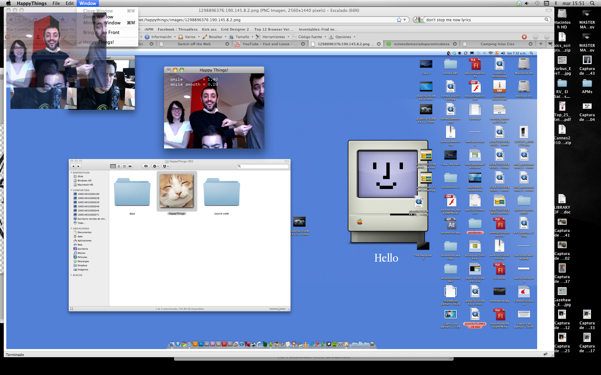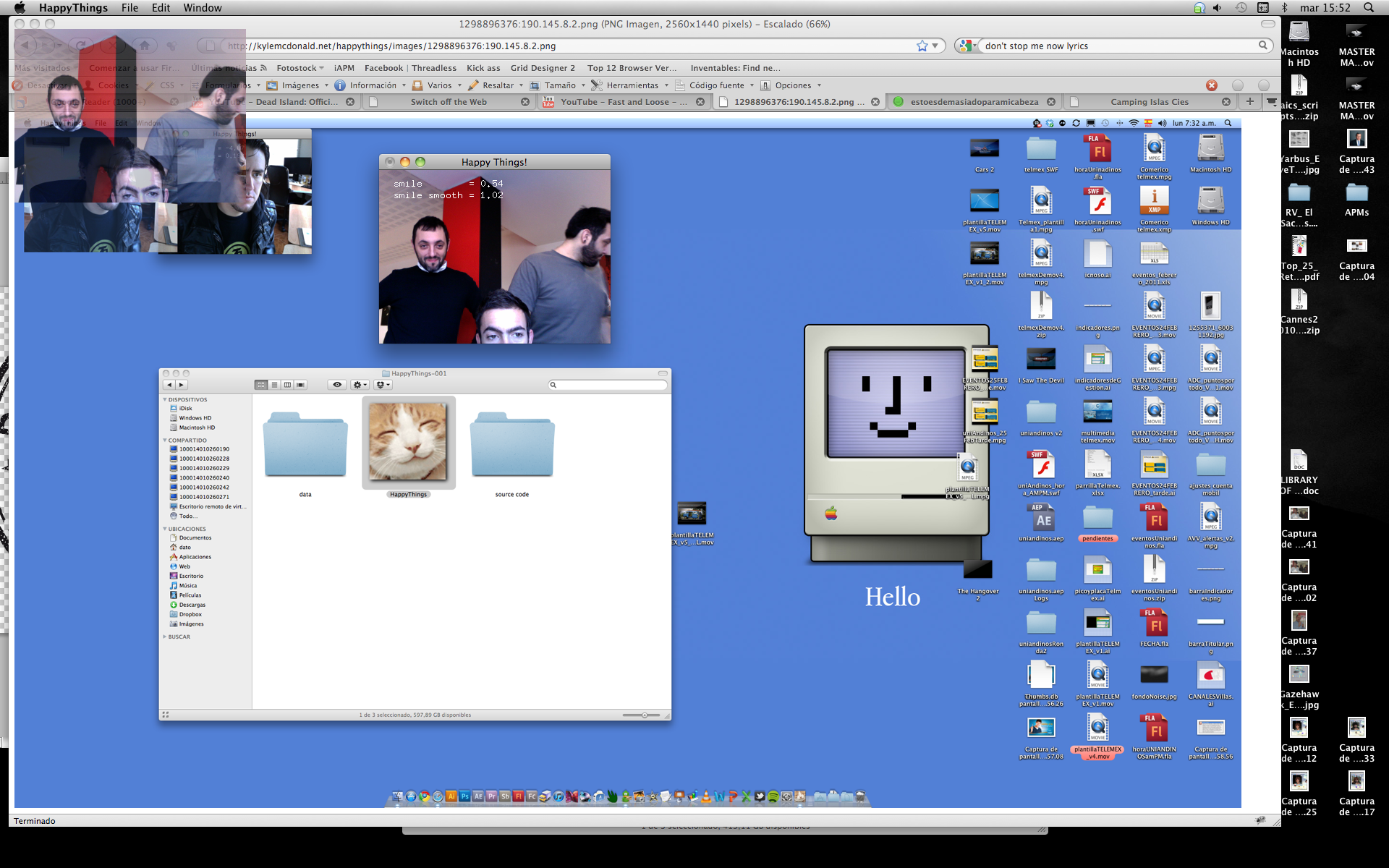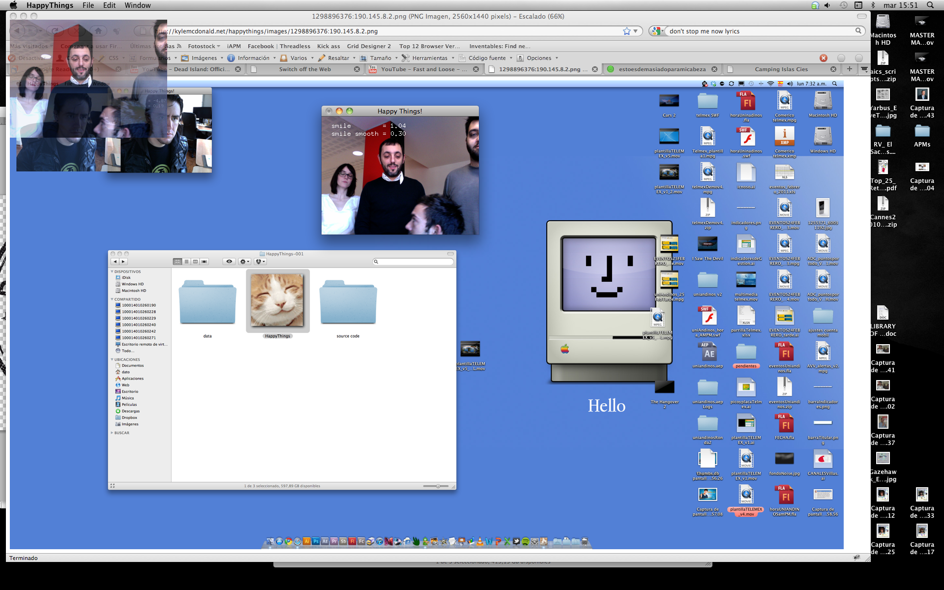 Happy Things is a one hour speed project by Theo Watson and Kyle McDonald that automatically posts a screenshot every time you smile. Download it here (OS X, 10 MB).
