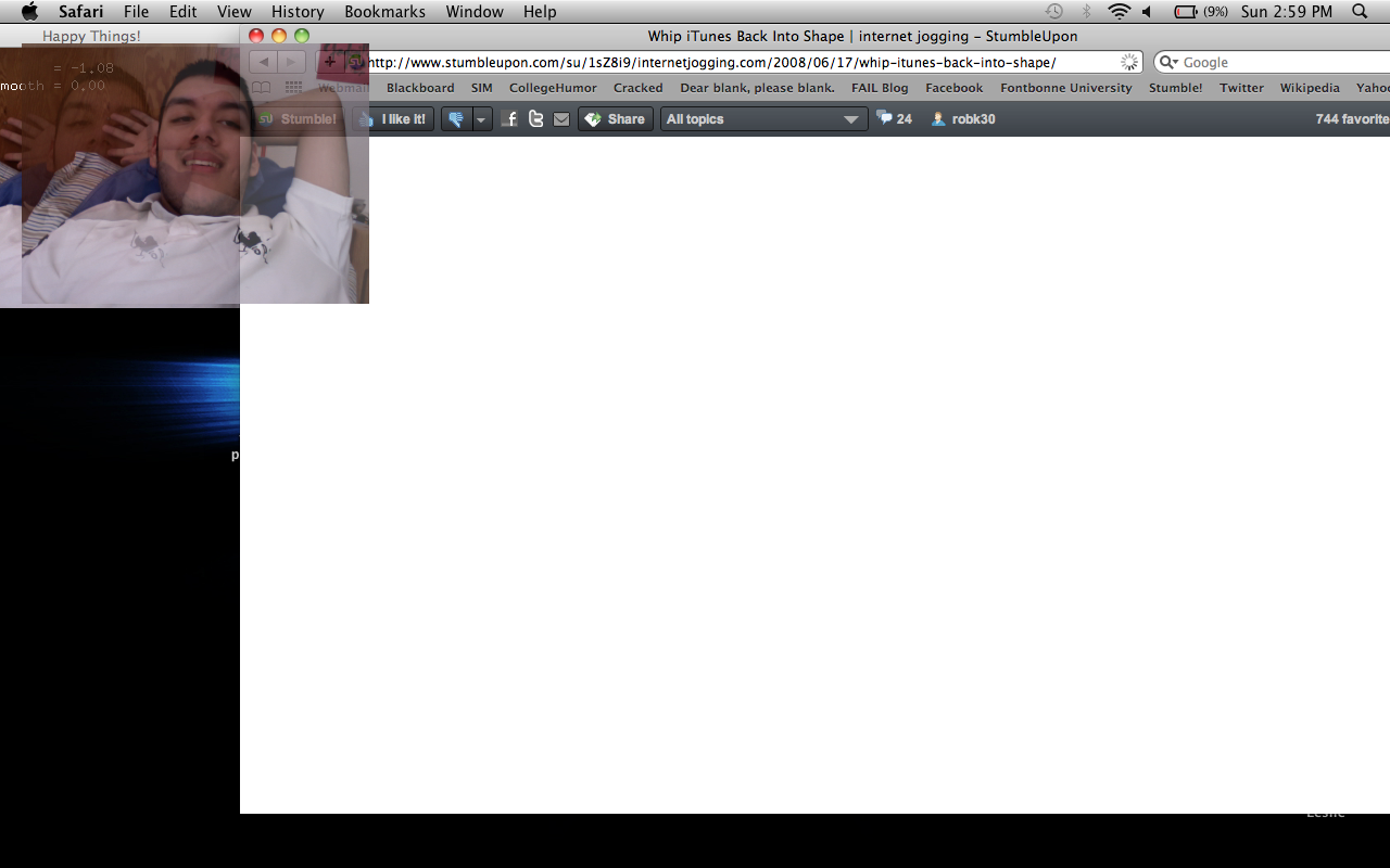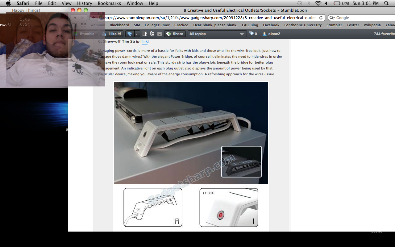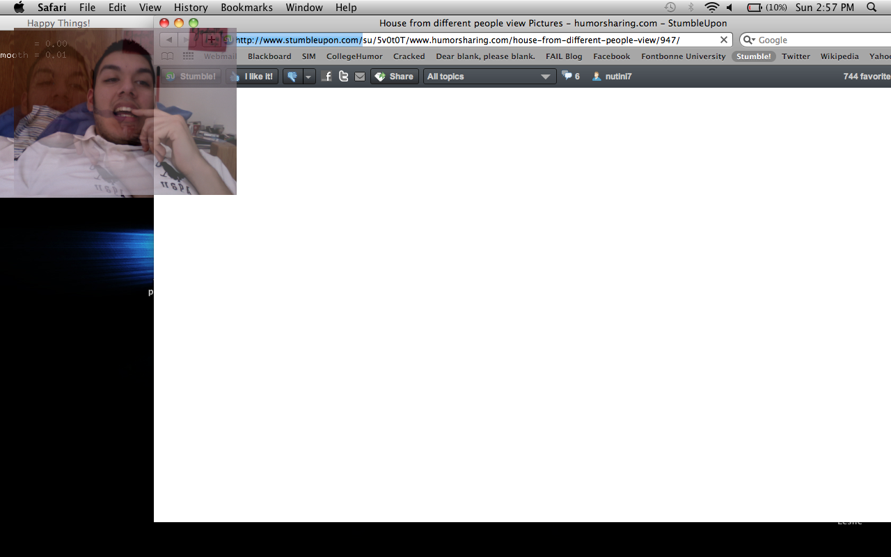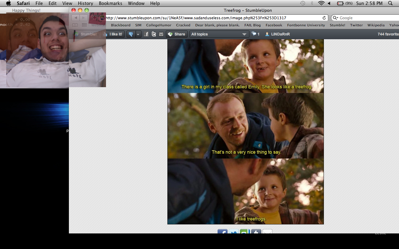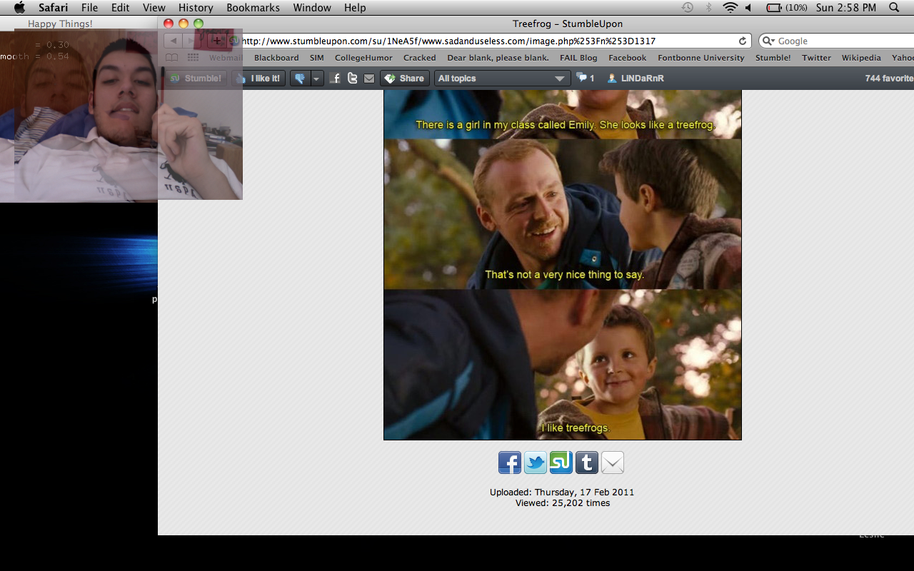 Happy Things is a one hour speed project by Theo Watson and Kyle McDonald that automatically posts a screenshot every time you smile. Download it here (OS X, 10 MB).