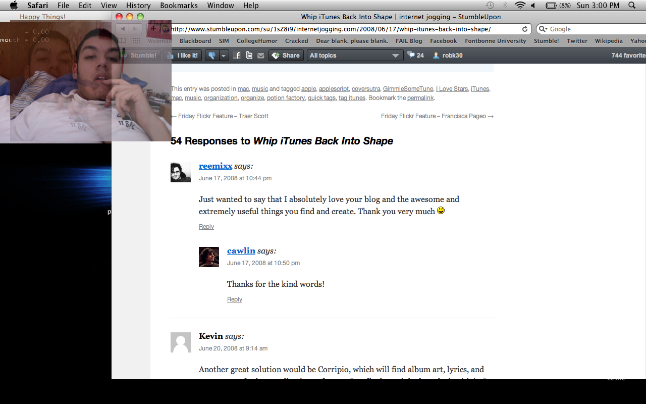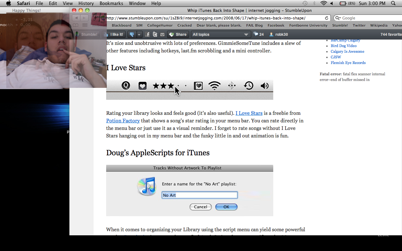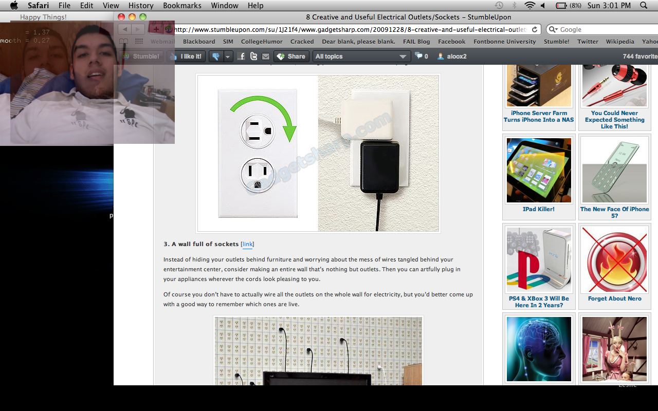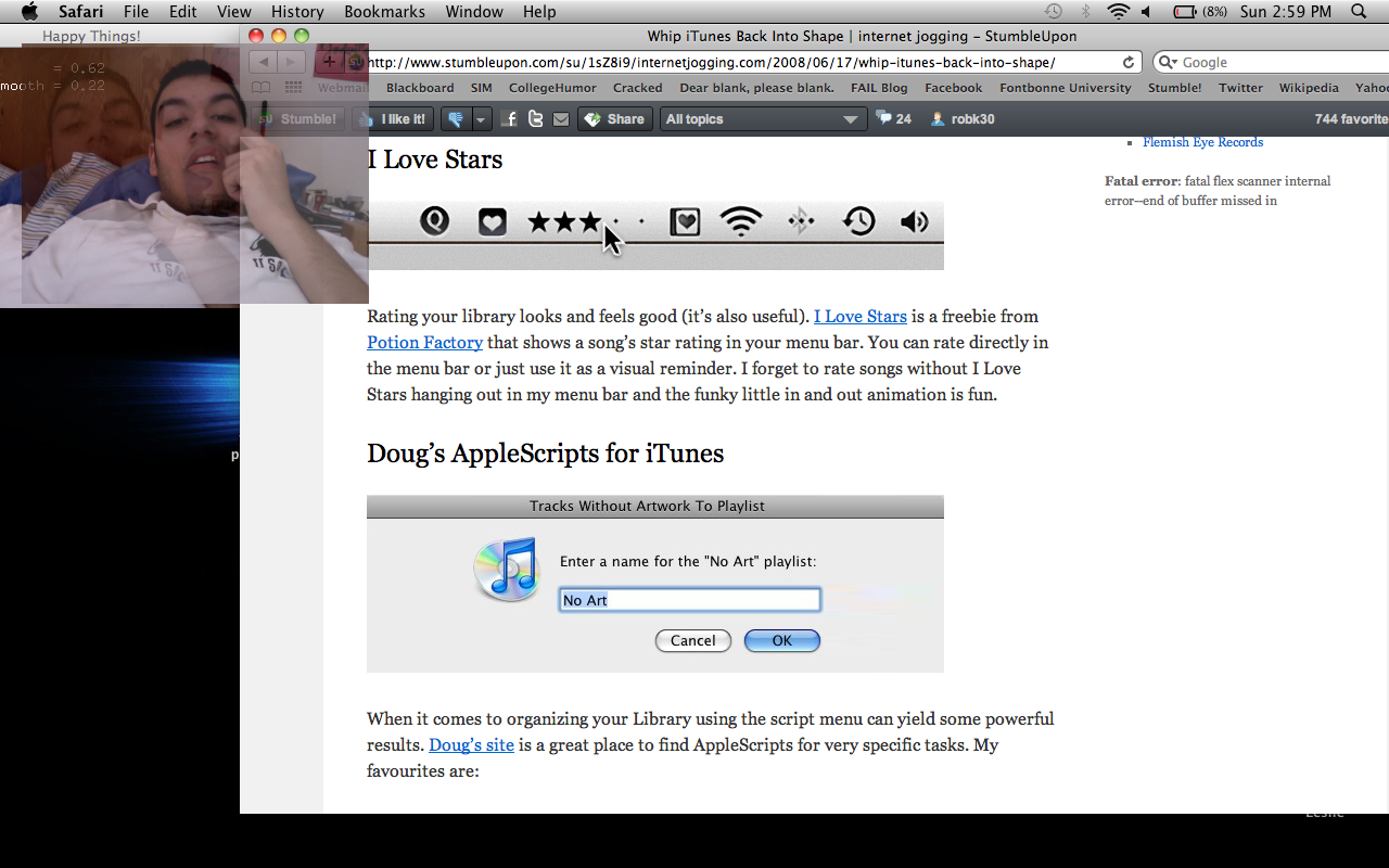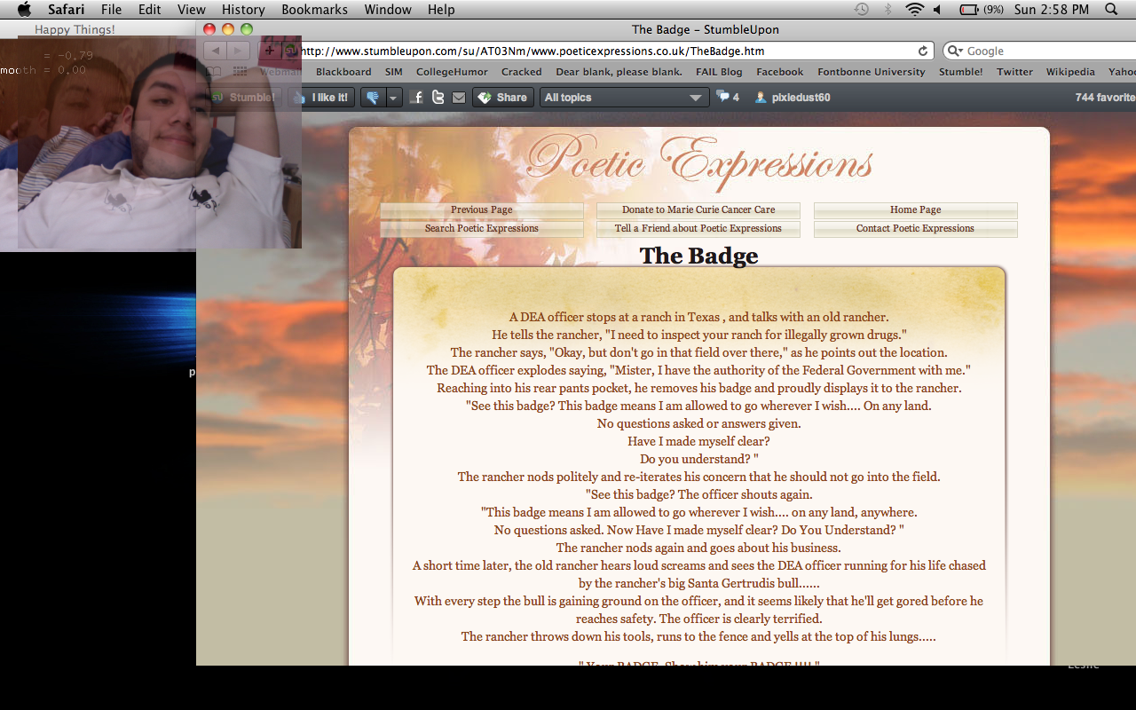 Happy Things is a one hour speed project by Theo Watson and Kyle McDonald that automatically posts a screenshot every time you smile. Download it here (OS X, 10 MB).